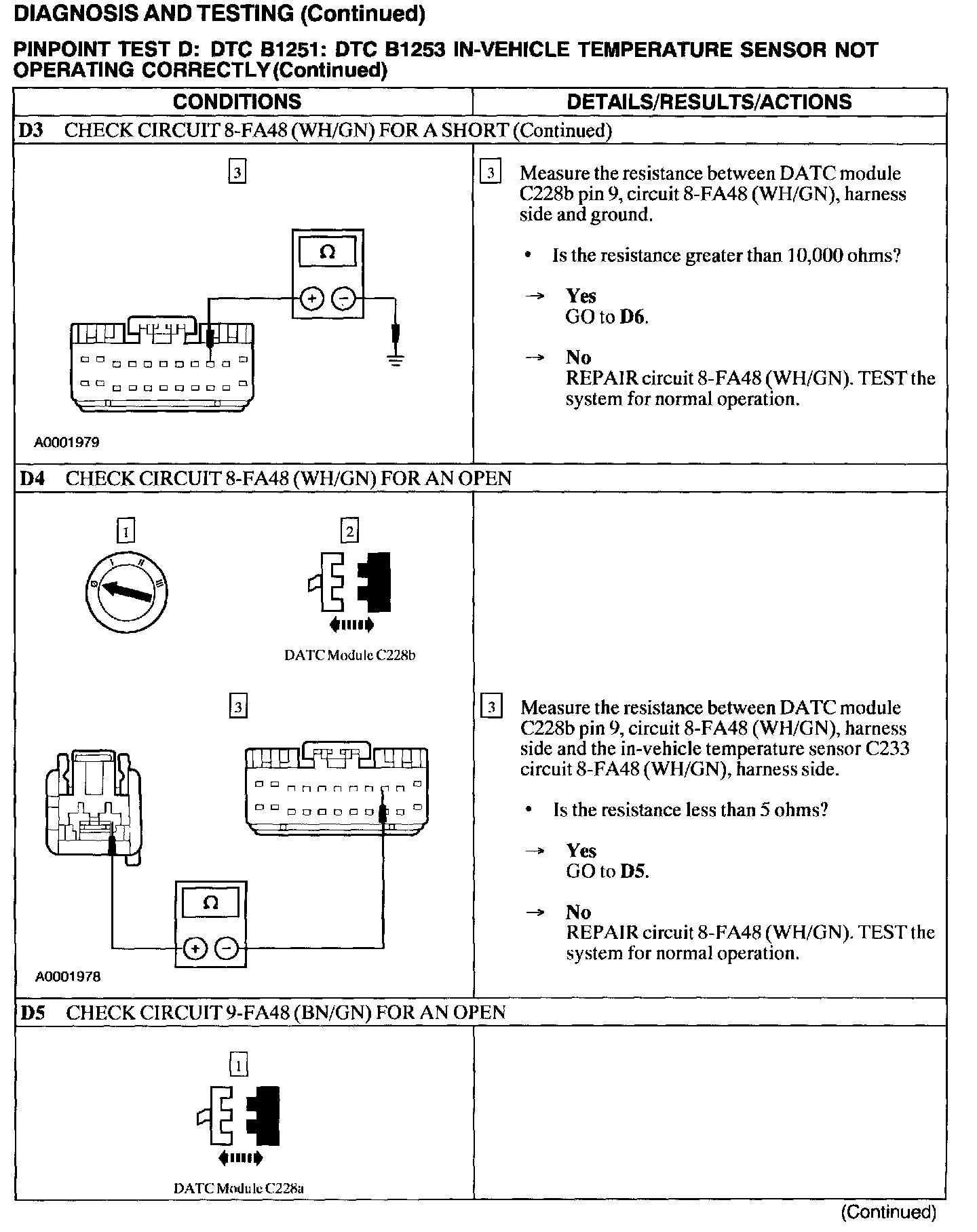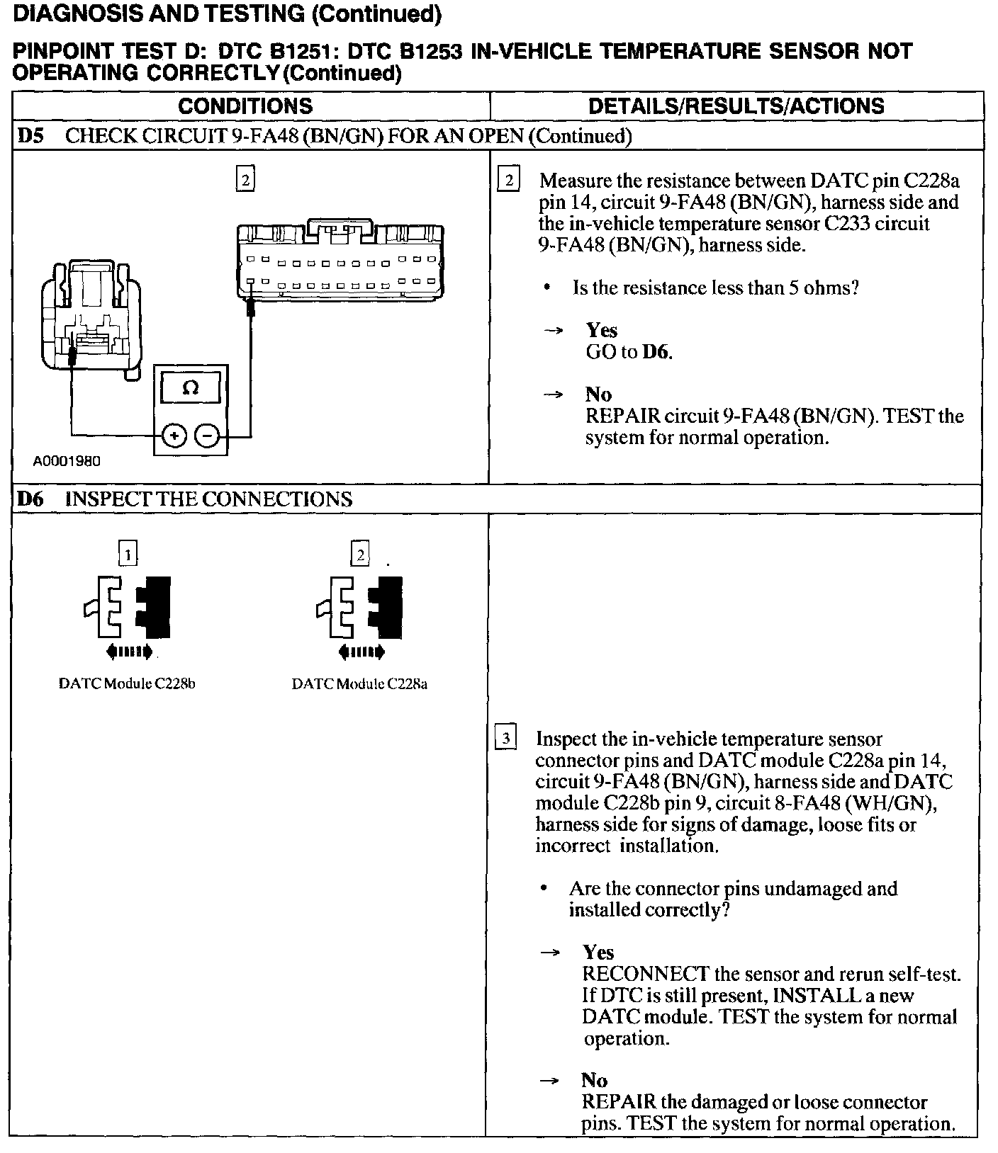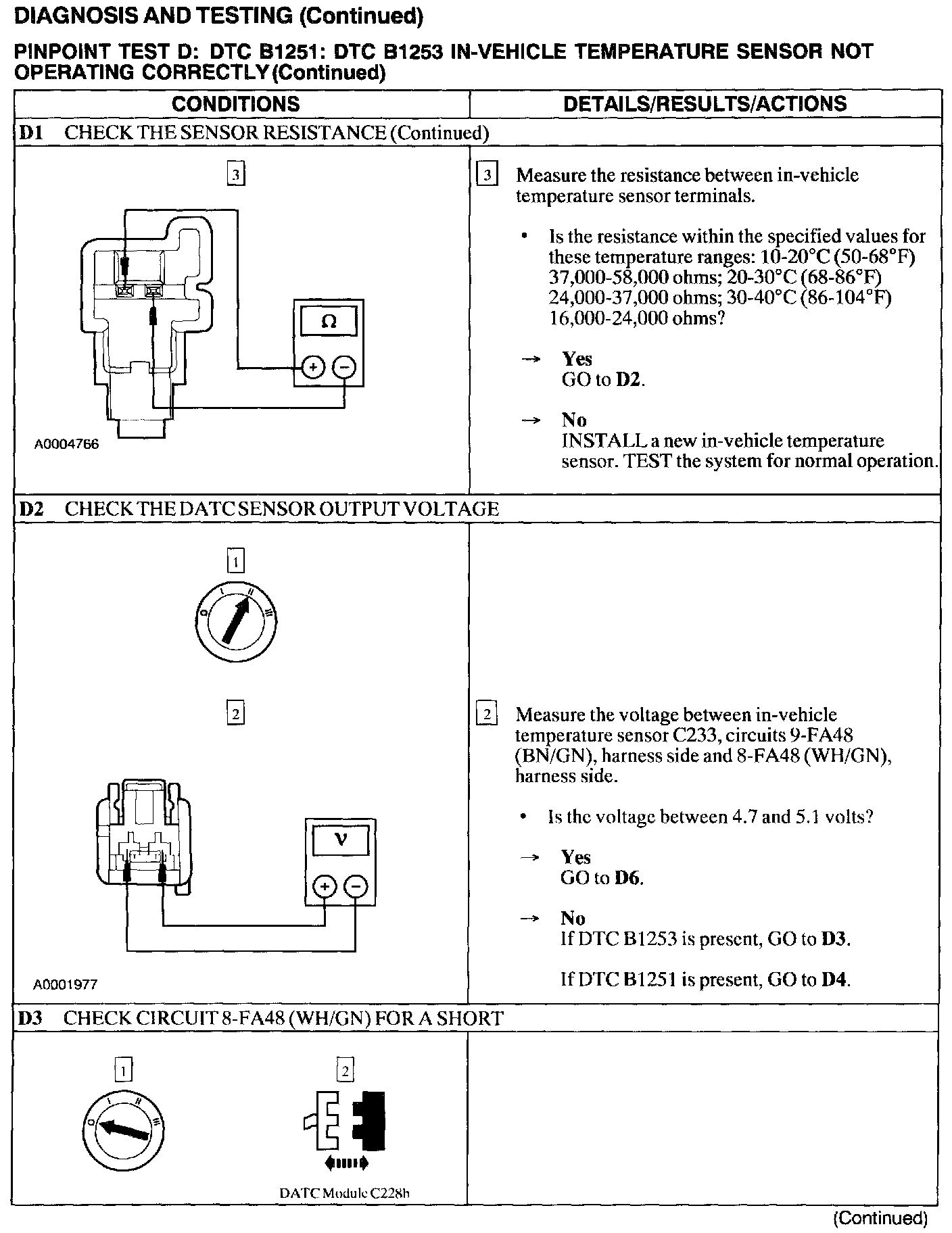 Test D: B1251,B1253 In-Veh. Temp. Sen. Operates Incorrect