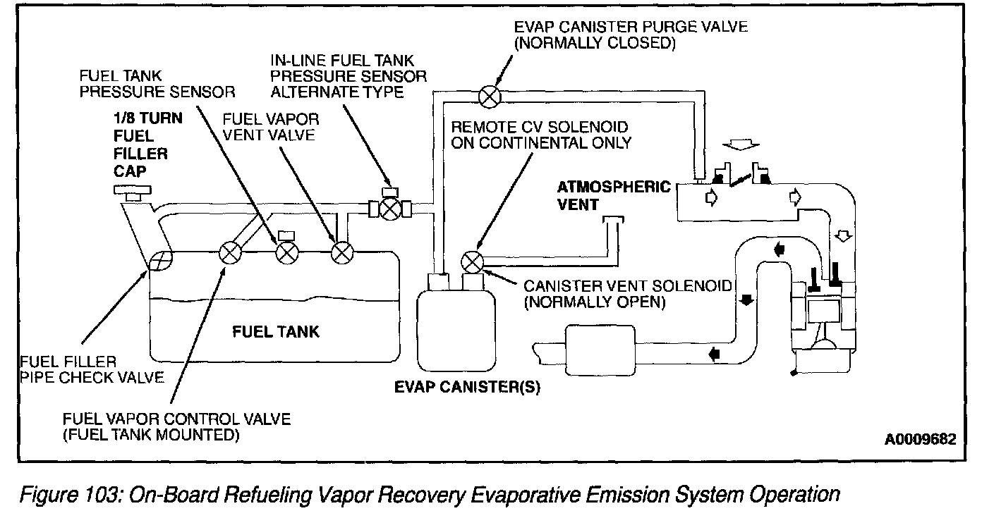The basic elements forming the ORVR system (Figure 101), (Figure 102) and (Figure 103) operation are as follows when fuel is dispensed: