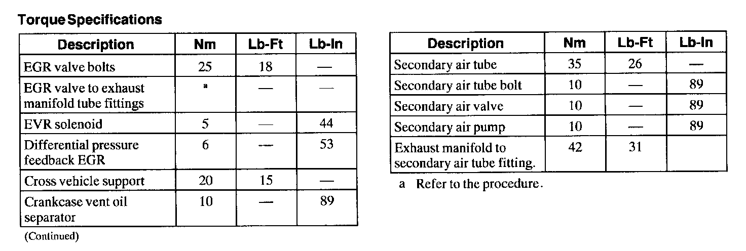 Torque Specifications: