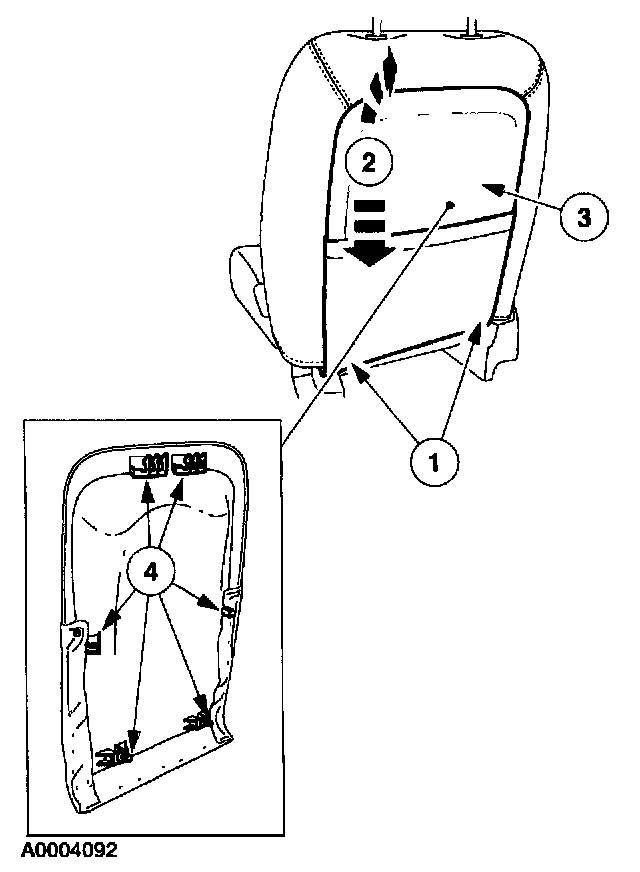 3 Pull out evenly at the top of the seat back trim panel and remove it.
