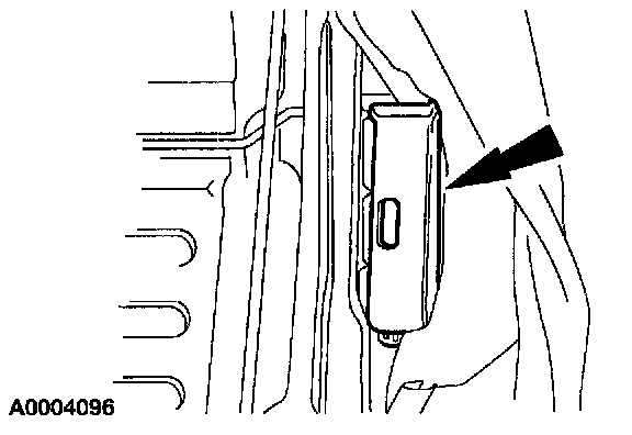 2 Release the two connector tabs (one shown) by pushing in on them and disconnect the side air bag module.