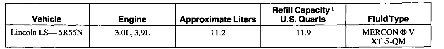 Capacity1 Approximate dry capacity, includes cooler and tubes. Fluid level procedures should be used to determine actual fluid requirements and fluid specifications. DO NOT OVERFILL. If it is necessary to add or change fluid, use only fluid that has been certified by the supplier.