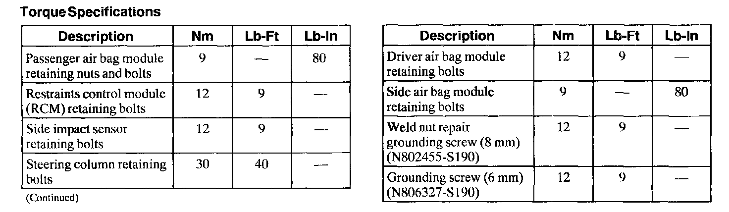 Torque Specifications: