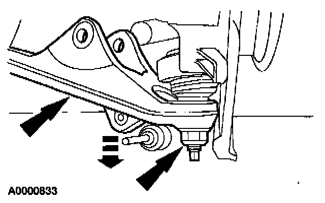 Remove and discard the nut. Separate the front suspension lower arm from the wheel knuckle.