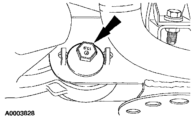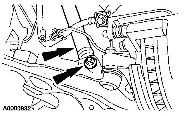 10. Remove and discard the rear nut and bolt. Remove the front suspension lower arm.