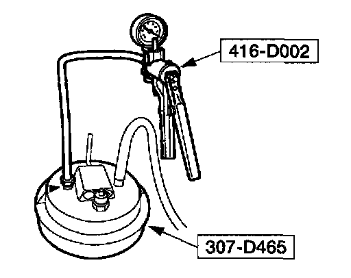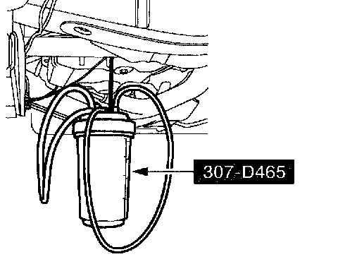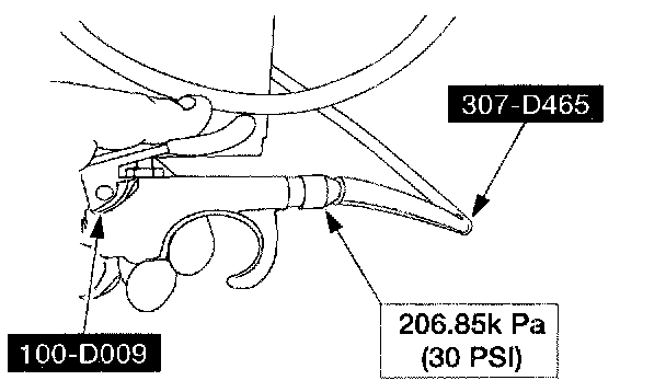 12. Apply a maximum of 206.85 kPa (30 psi) to the open end of the vacuum/pressure hose from the special tool. Fluid will immediately start flowing out of the special tool into the transmission fluid pan.