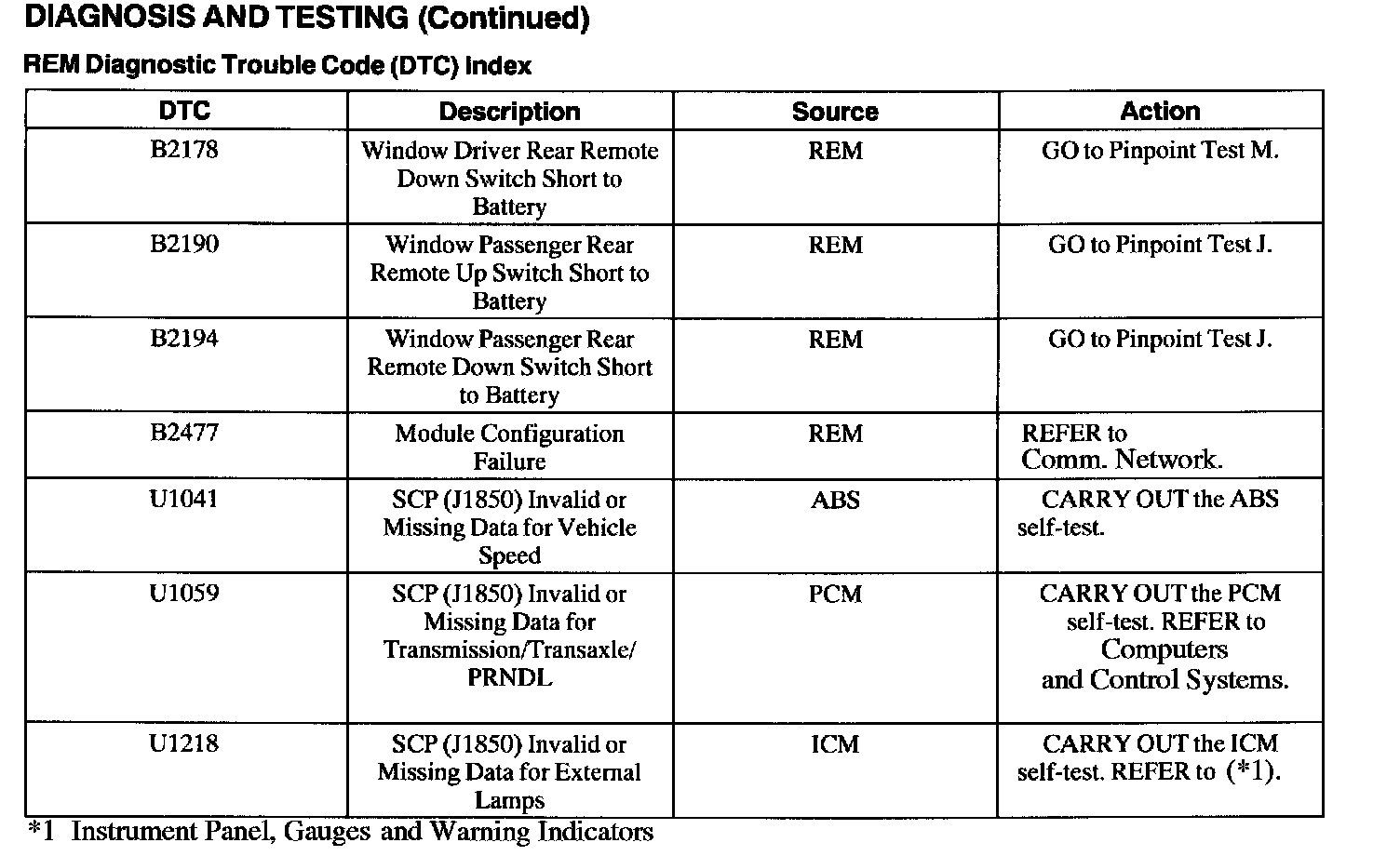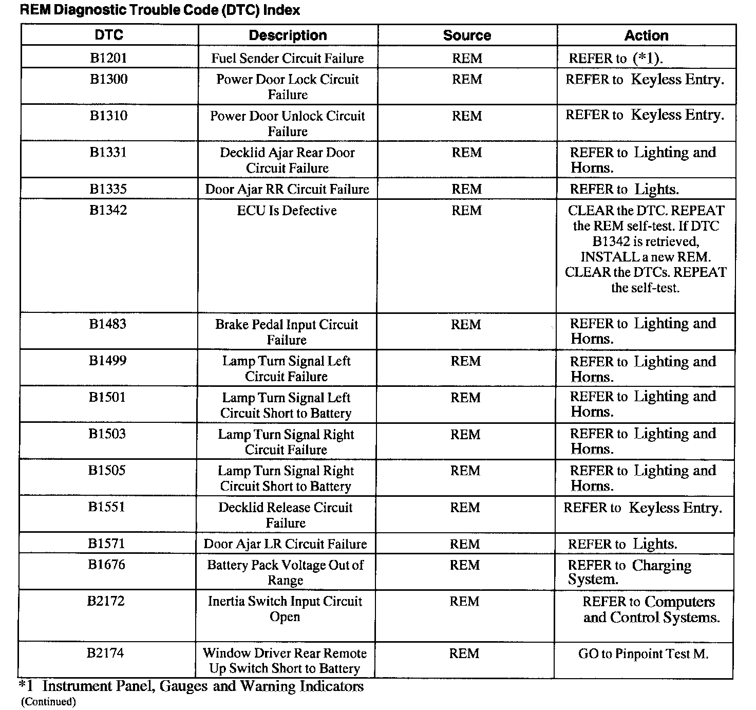 REM Diagnostic Trouble Code (DTC) Index