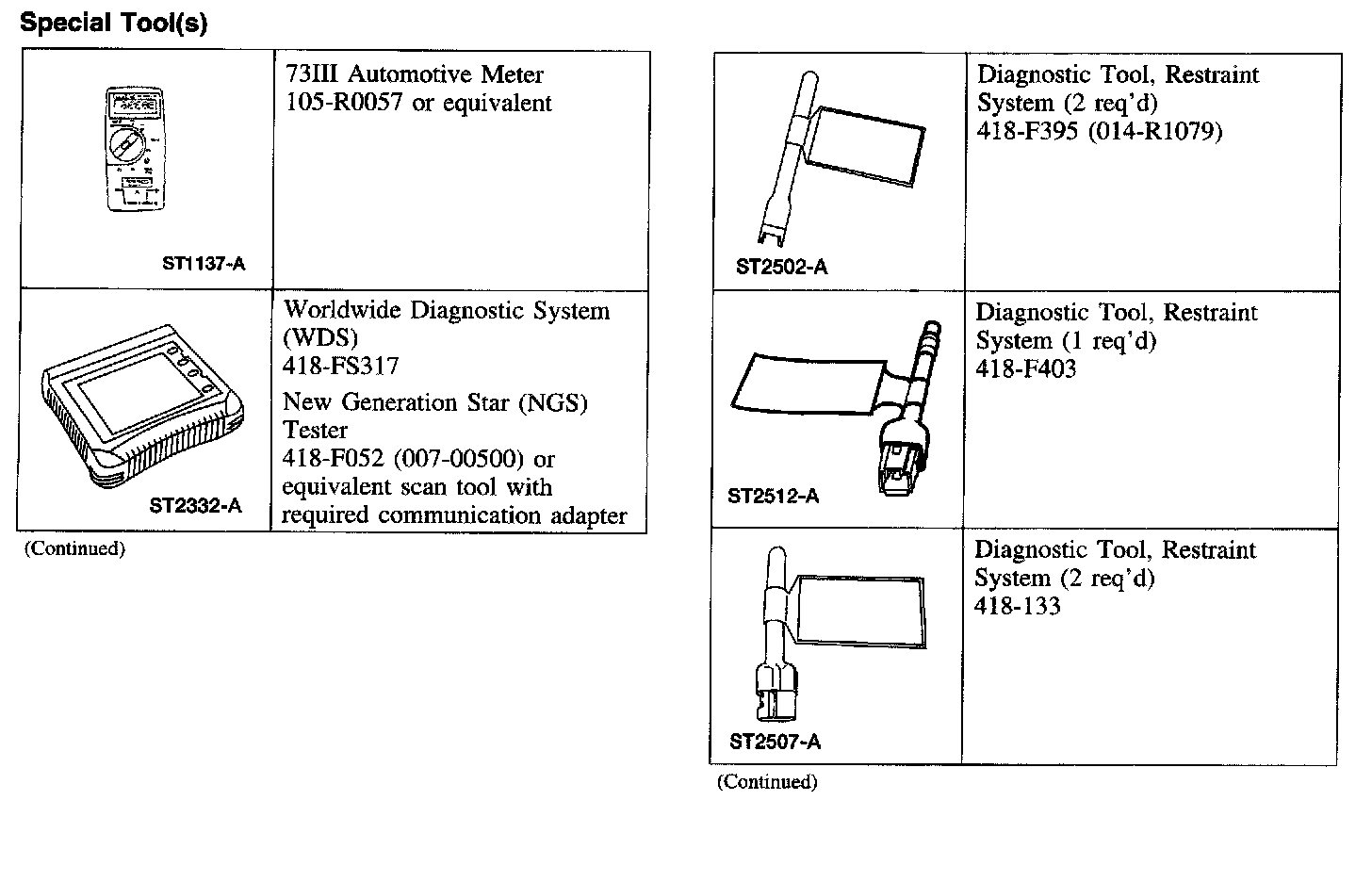 WARNING: The restraint system diagnostic tools are for restraint system service only. Remove from vehicle prior to road use. Failure to remove could result in injury and possible violation of vehicle safety standards.
