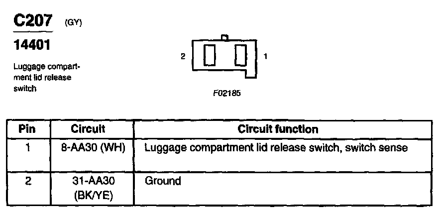 Luggage Compartment Lid Release Switch