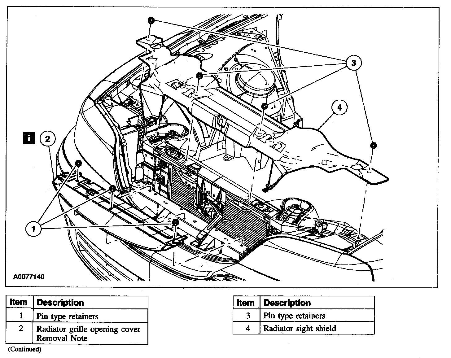 Item 2: Radiator Grille Opening Cover Removal Note