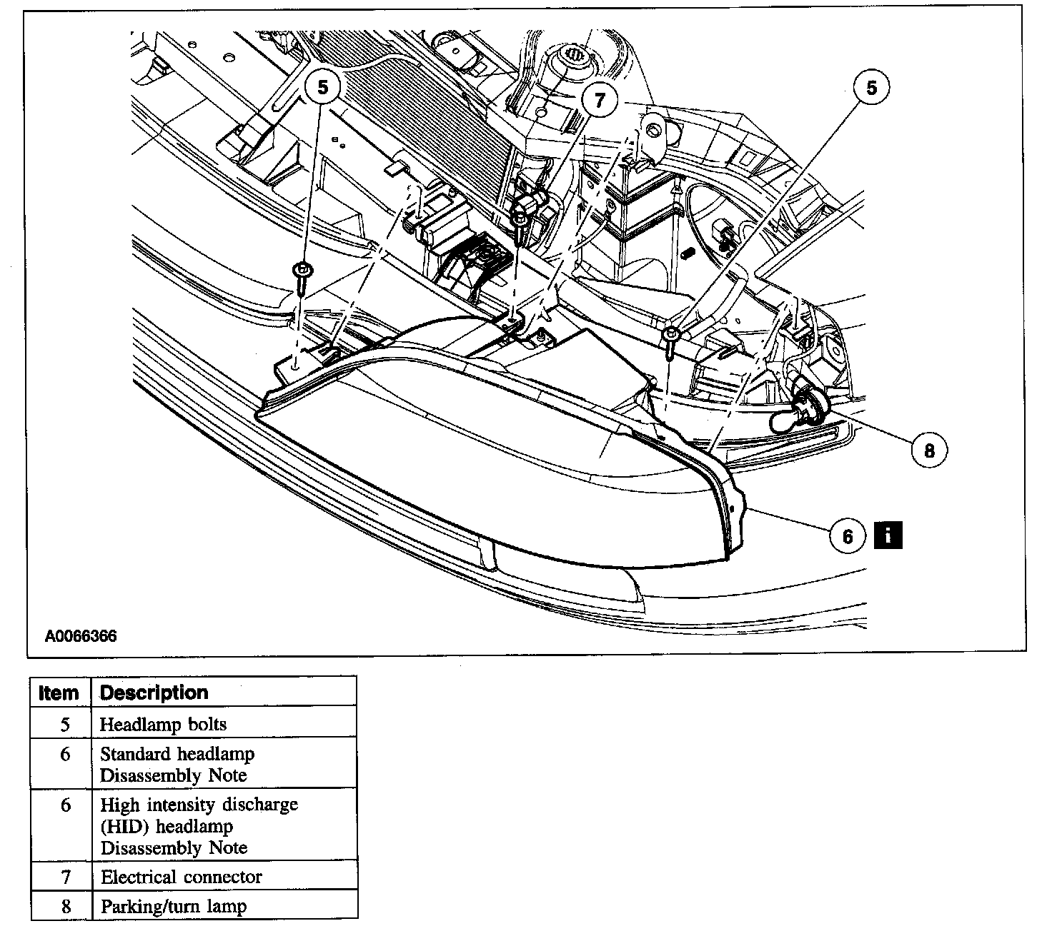 Item 6: Standard Headlamp Disassembly Note