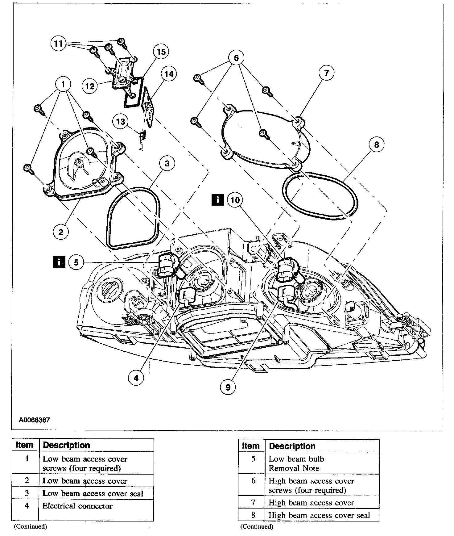 Items 5 and 10: Low and High Beam Bulb Removal Note