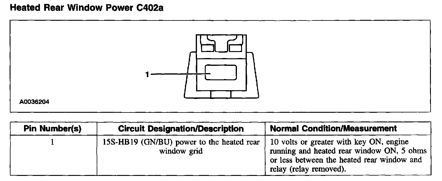 Heated Rear Window Power C402a: