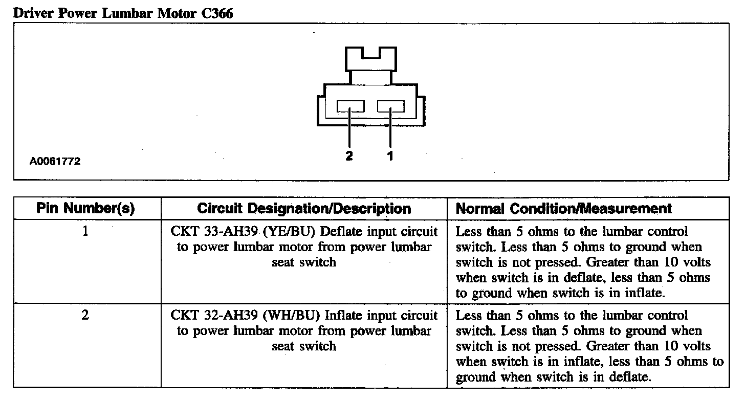 Driver Power Lumbar Motor C366: