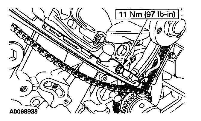 12. Install the RH timing chain tensioner.