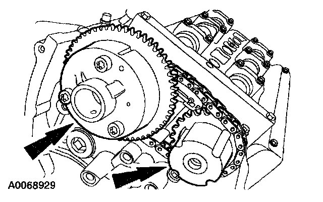 2. Remove the RH VCT unit, exhaust camshaft sprocket and timing chain as an assembly.