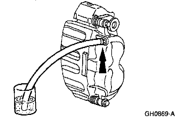 CAUTION: Do not allow the brake master cylinder reservoir to run dry during the bleeding operation. Keep the brake master cylinder reservoir filled with the specified brake fluid. Never reuse the brake fluid that has been drained from the hydraulic system.