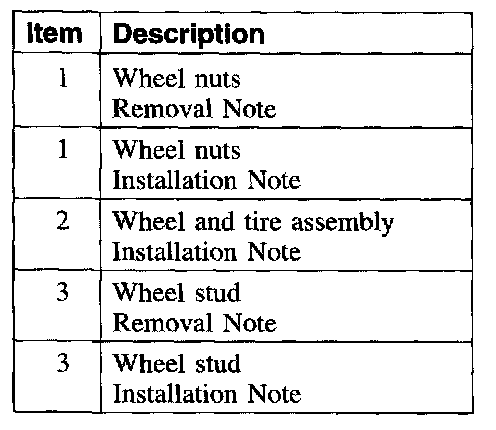 Item 1: Wheel Nuts Removal Note