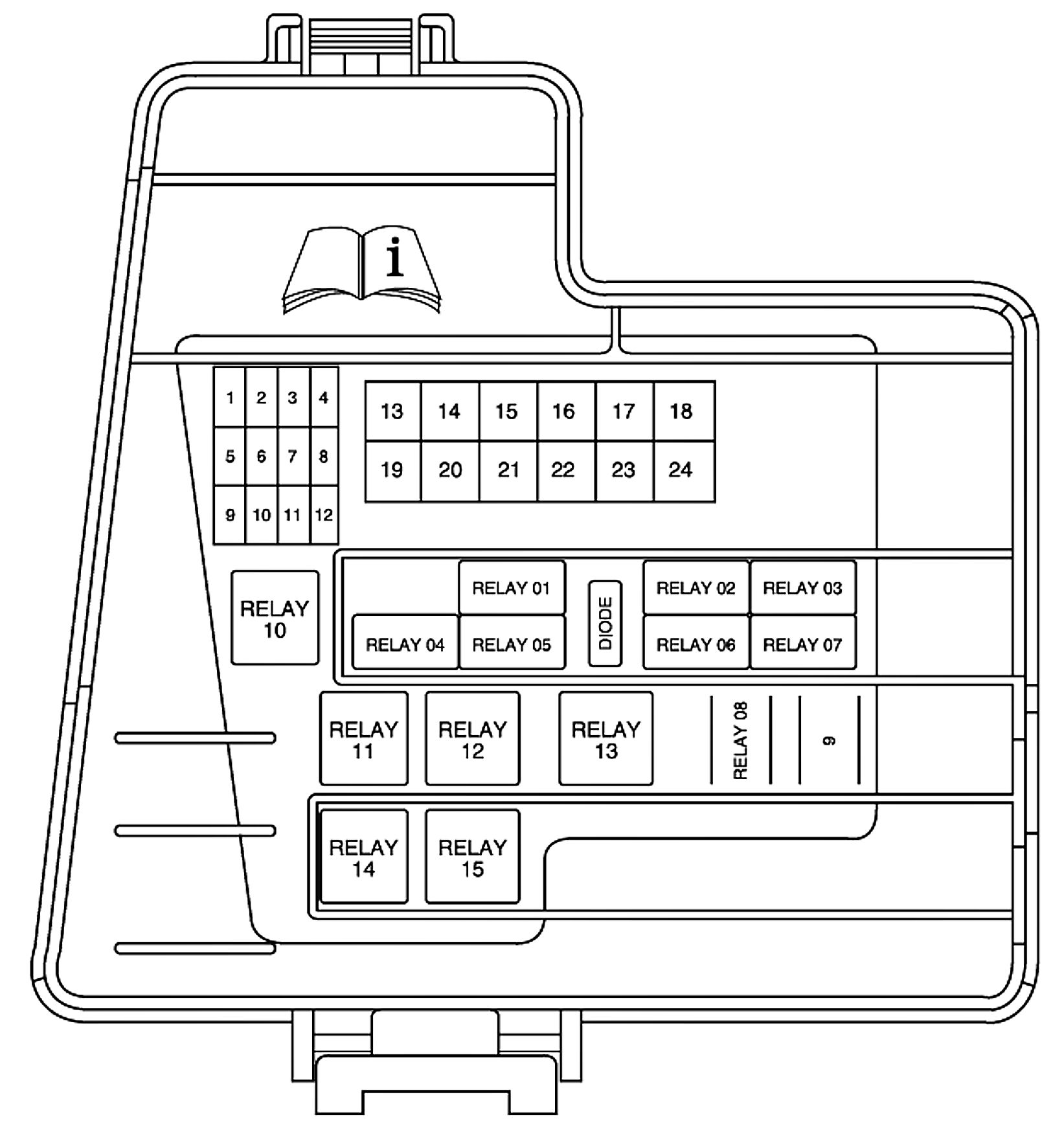 ALLDATA Editor's Note: Ford identifies this one component by 2 different names. Users have reported success comparing these images to determine Application/ID or Location of Fuses and Relays with the Front Power Distribution Box / Auxiliary Junction Box (AJB), underhood.