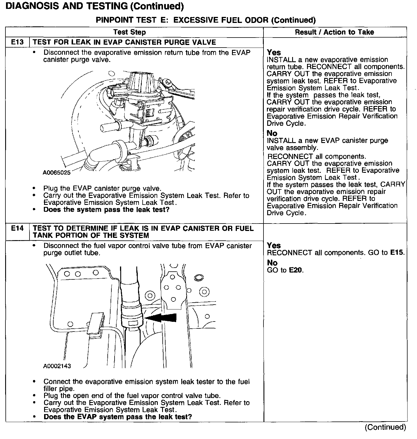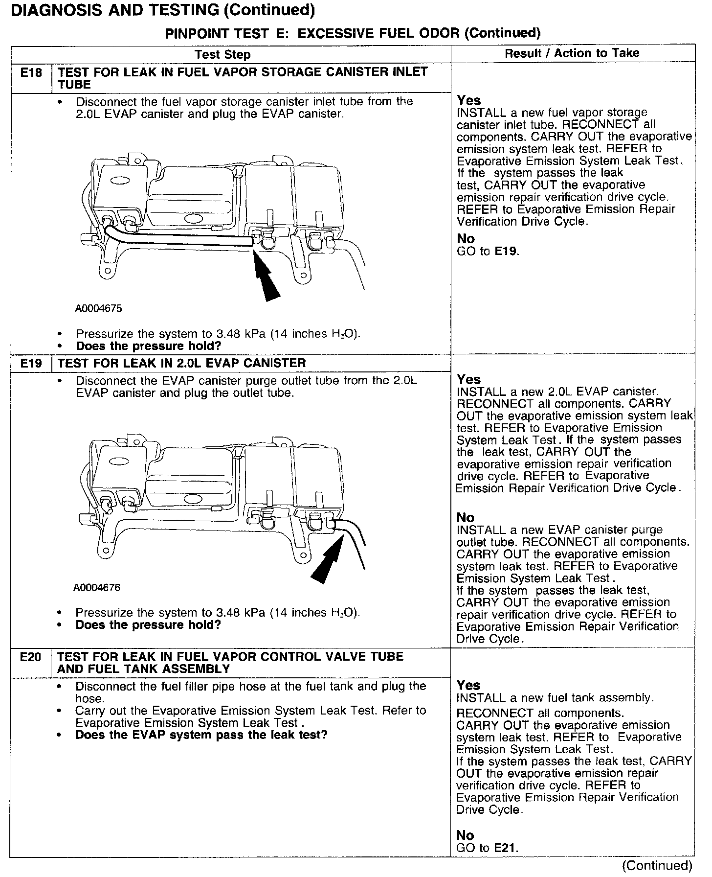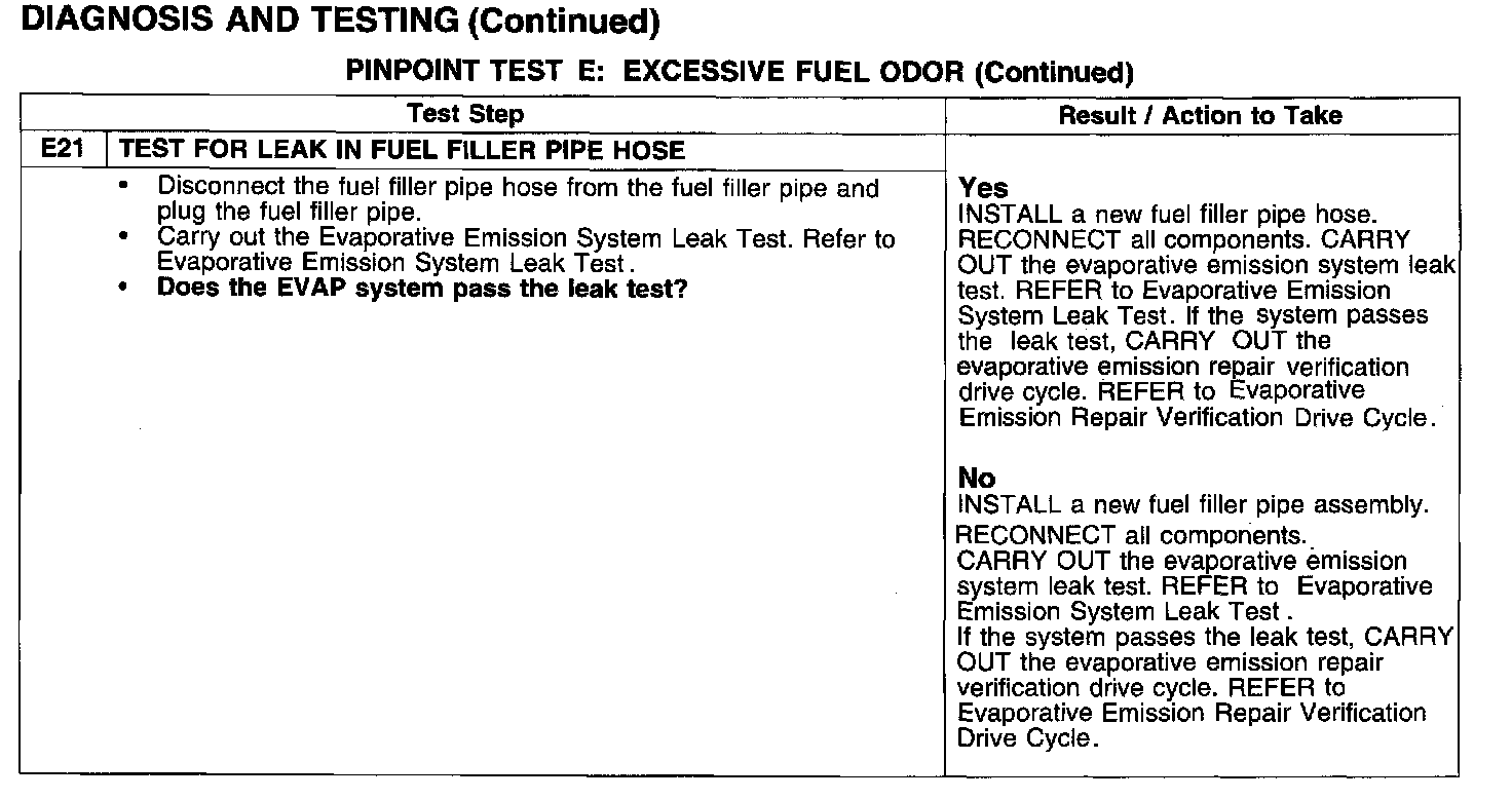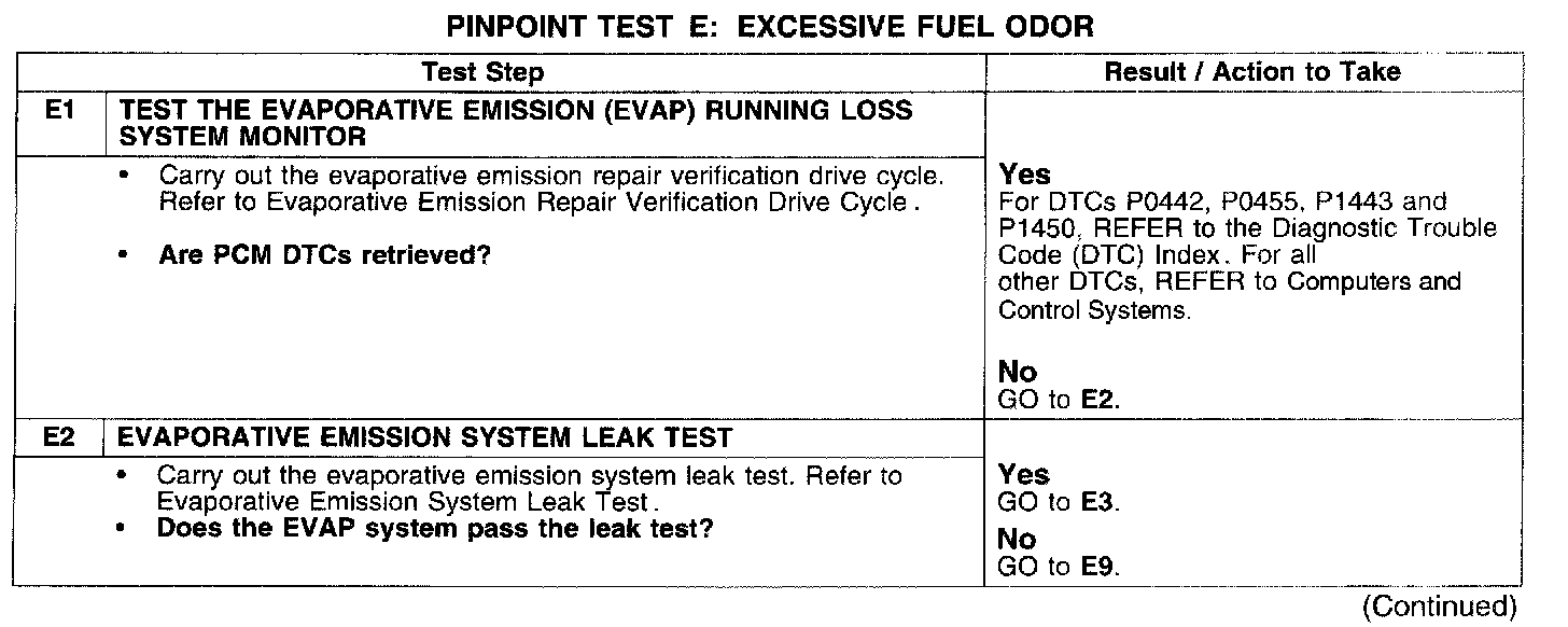 PINPOINT TEST E: EXCESSIVE FUEL ODOR