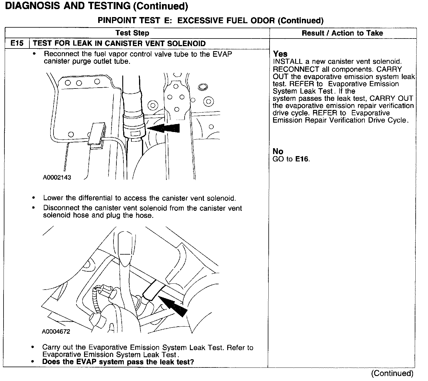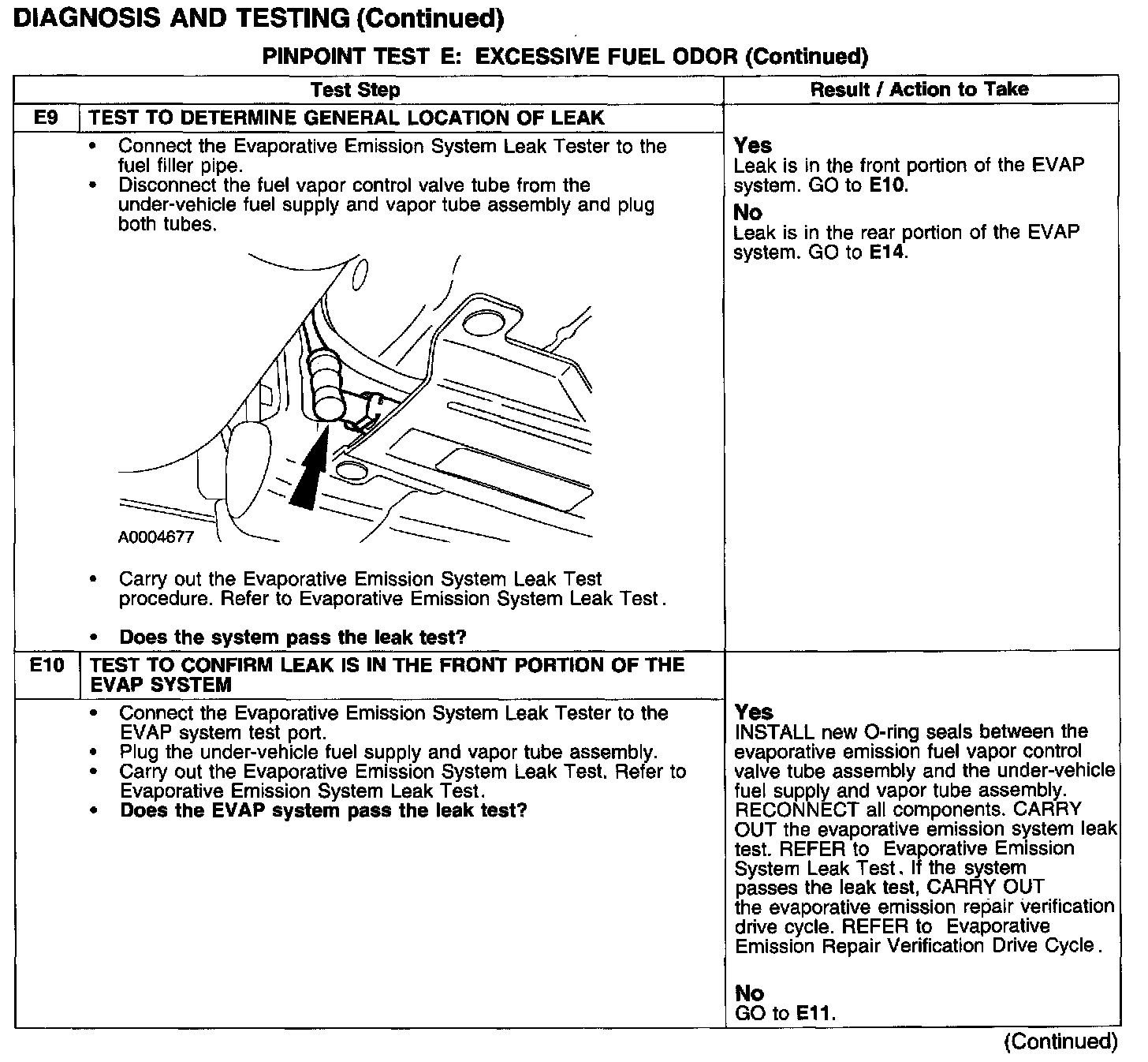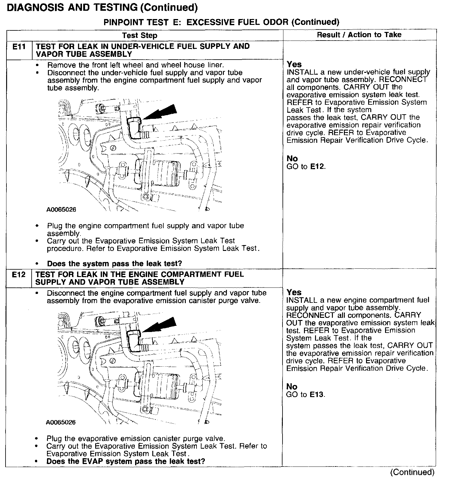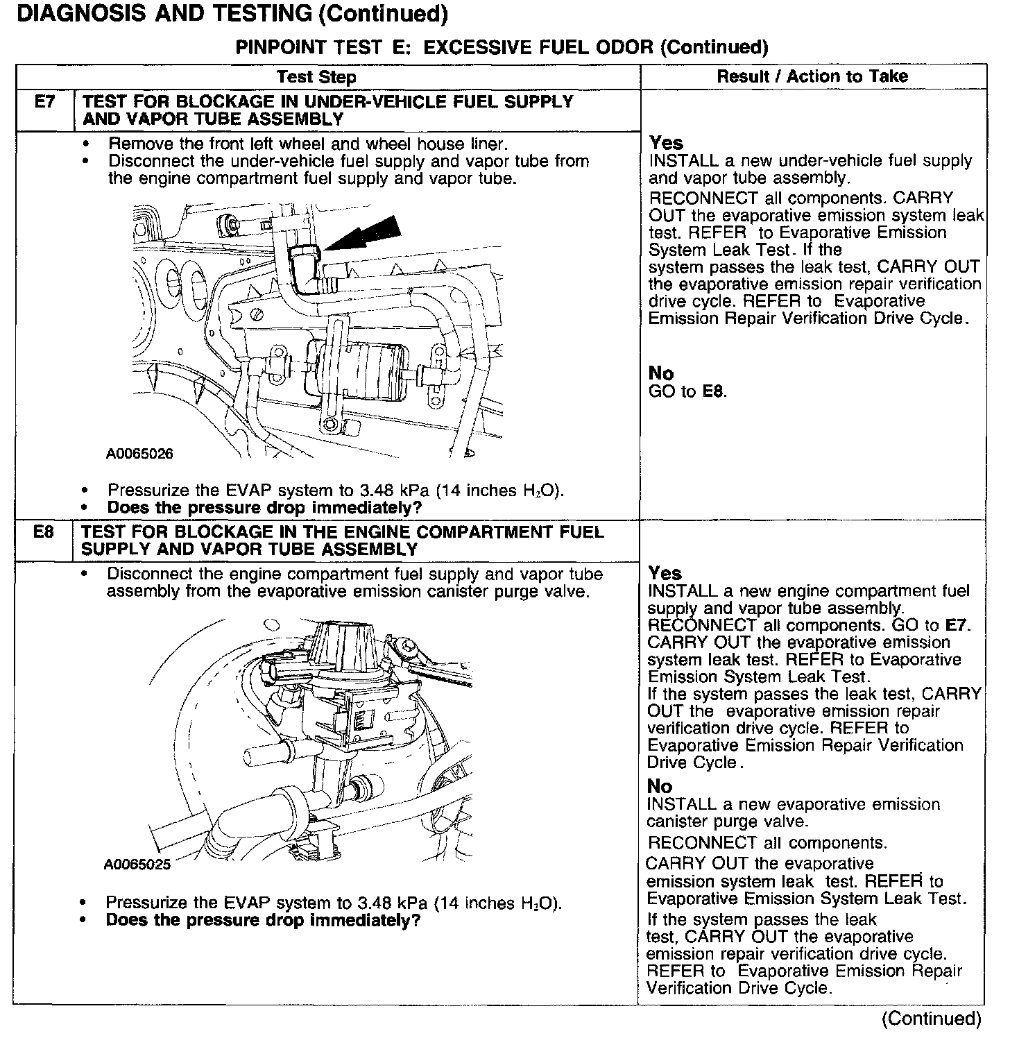 PINPOINT TEST E: EXCESSIVE FUEL ODOR