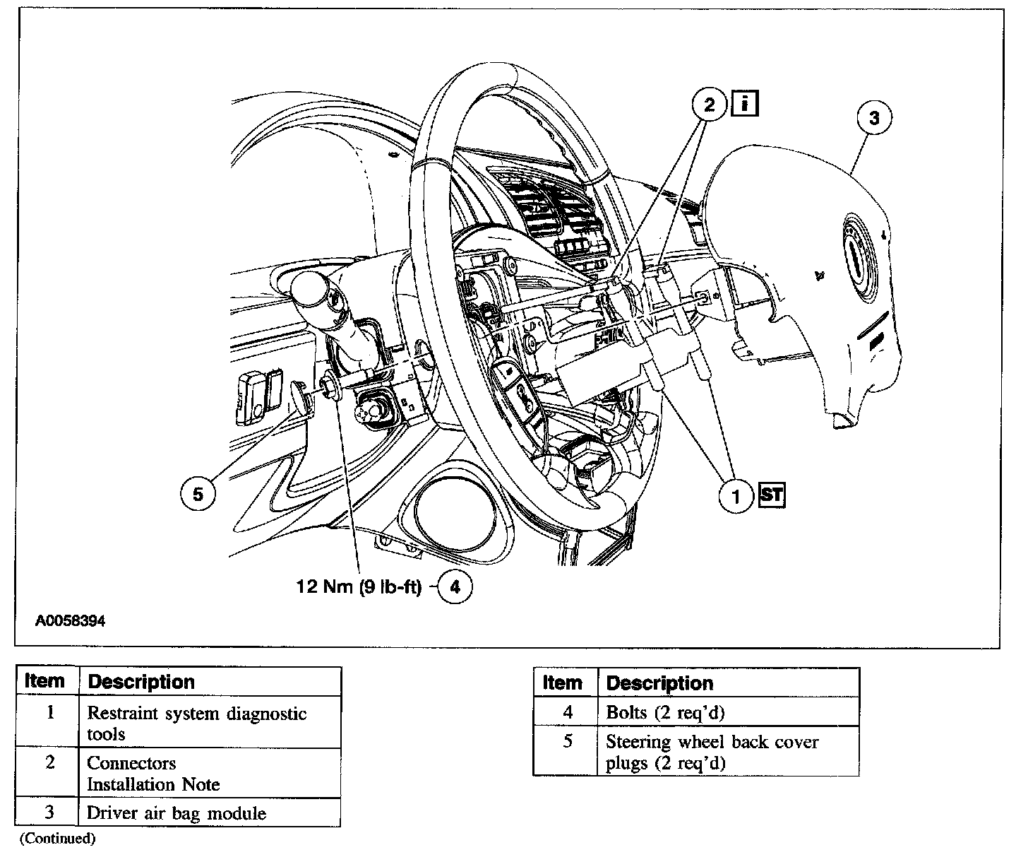 NOTE: Within the Supplemental Restraint System (SRS) Deactivation and Reactivation procedure the driver air bag module is removed and restraint system diagnostic tools are attached at the appropriate locations.