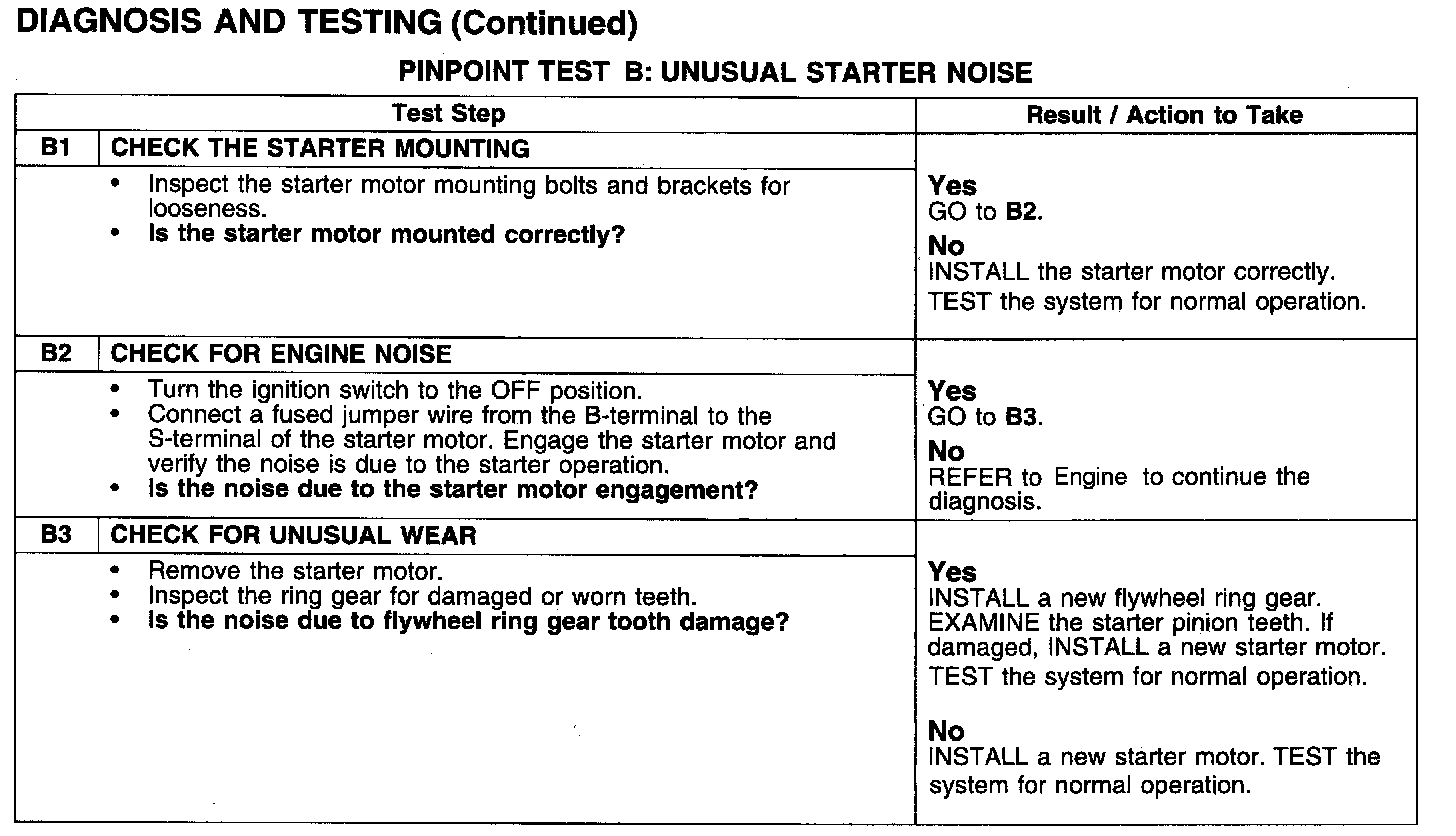 PINPOINT TEST B: UNUSUAL STARTER NOISE