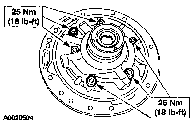 1. Loosely install the fluid pump housing screws in their correct location and remove the special tools Install the two remaining screws