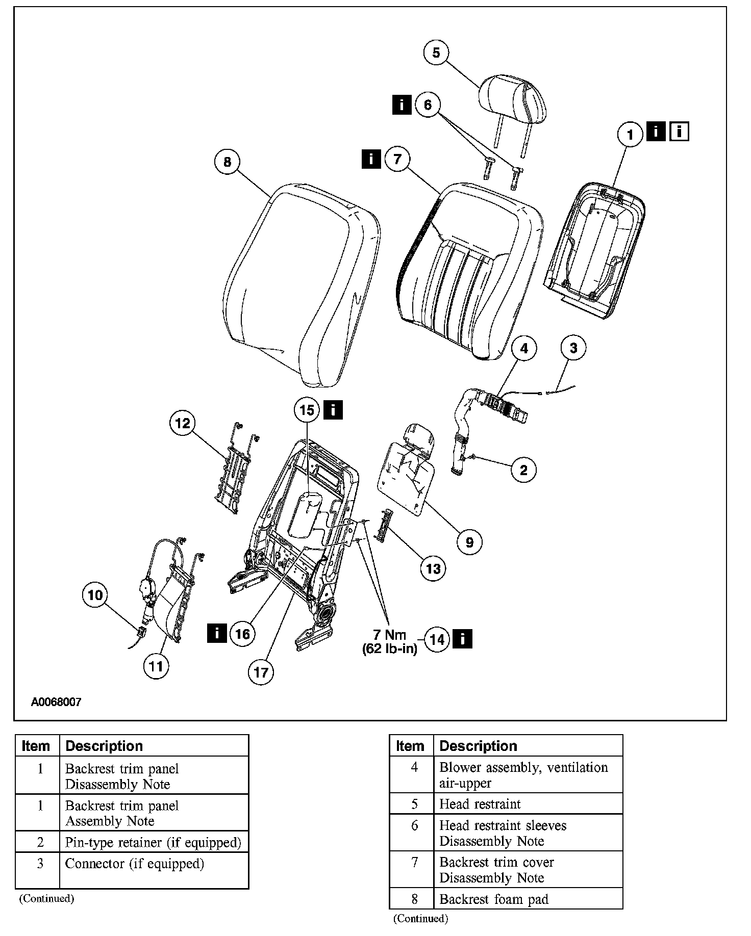 Item 1: Backrest Trim Panel Assembly Note