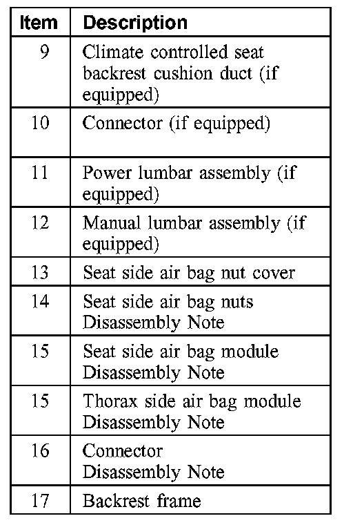 Item 15: Seat Side Air Bag Module or Thorax Side Air Bag Module Disassembly Note