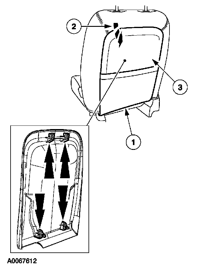 1. CAUTION: Inspect the seat back trim panel for damage. If the J-hooks are damaged or the pin-type retainers stayed in the seat frame, install a new panel.