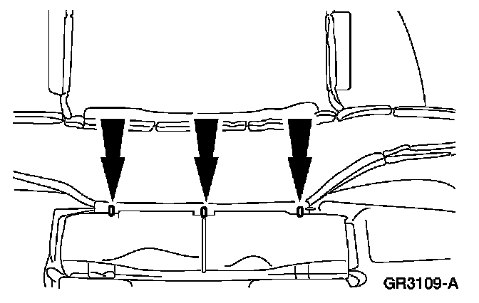 - Inspect the lower panel attachments. If either pin-type retainer remained in the seat frame, install a new panel.