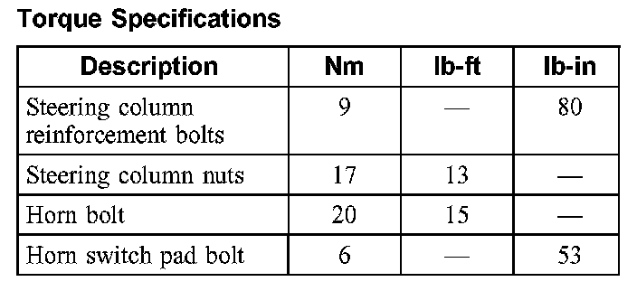 Torque Specifications: