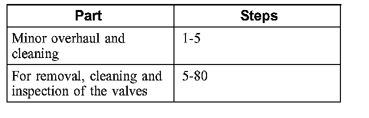 1. Remove the parts in the order indicated in the following illustration and table. Clean and inspect the valves.