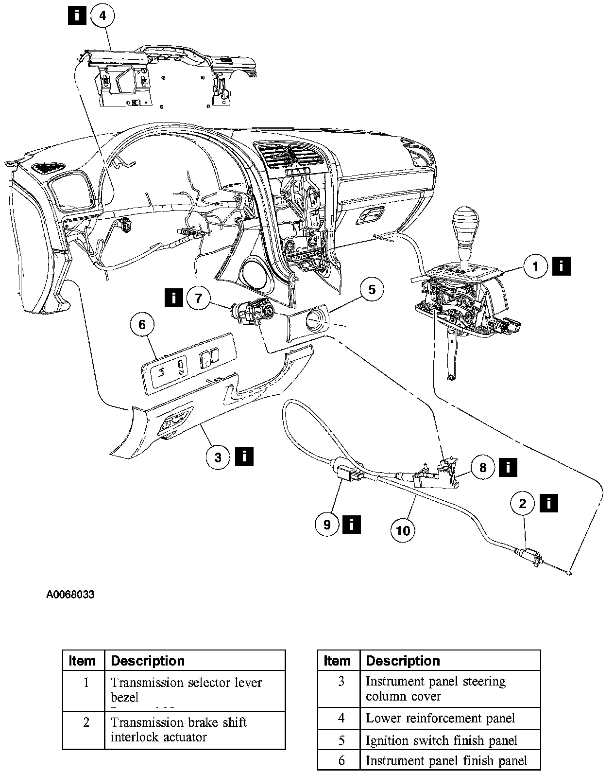 Item 1: Transmission Selector Lever Bezel Removal Note