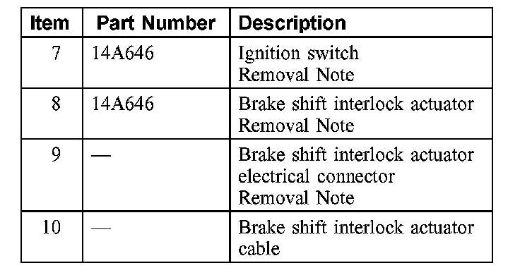 Item 8: Brake Shift Interlock Actuator Removal Note