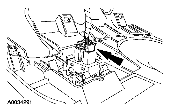 1. Disconnect the electrical connector from the brake shift interlock actuator cable.