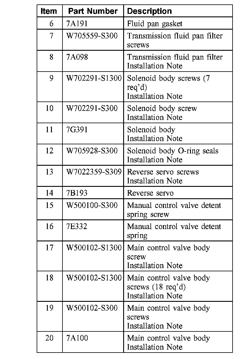 Item 8: Transmission Fluid Pan Filter Installation Note