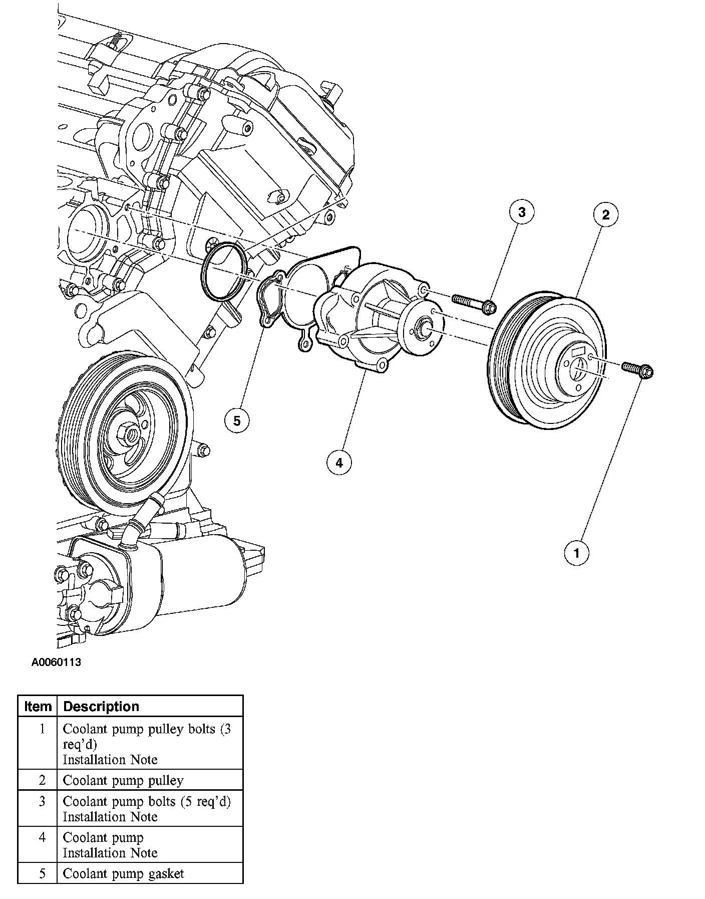 Item 1: Coolant Pump Pulley Bolts Installation Note