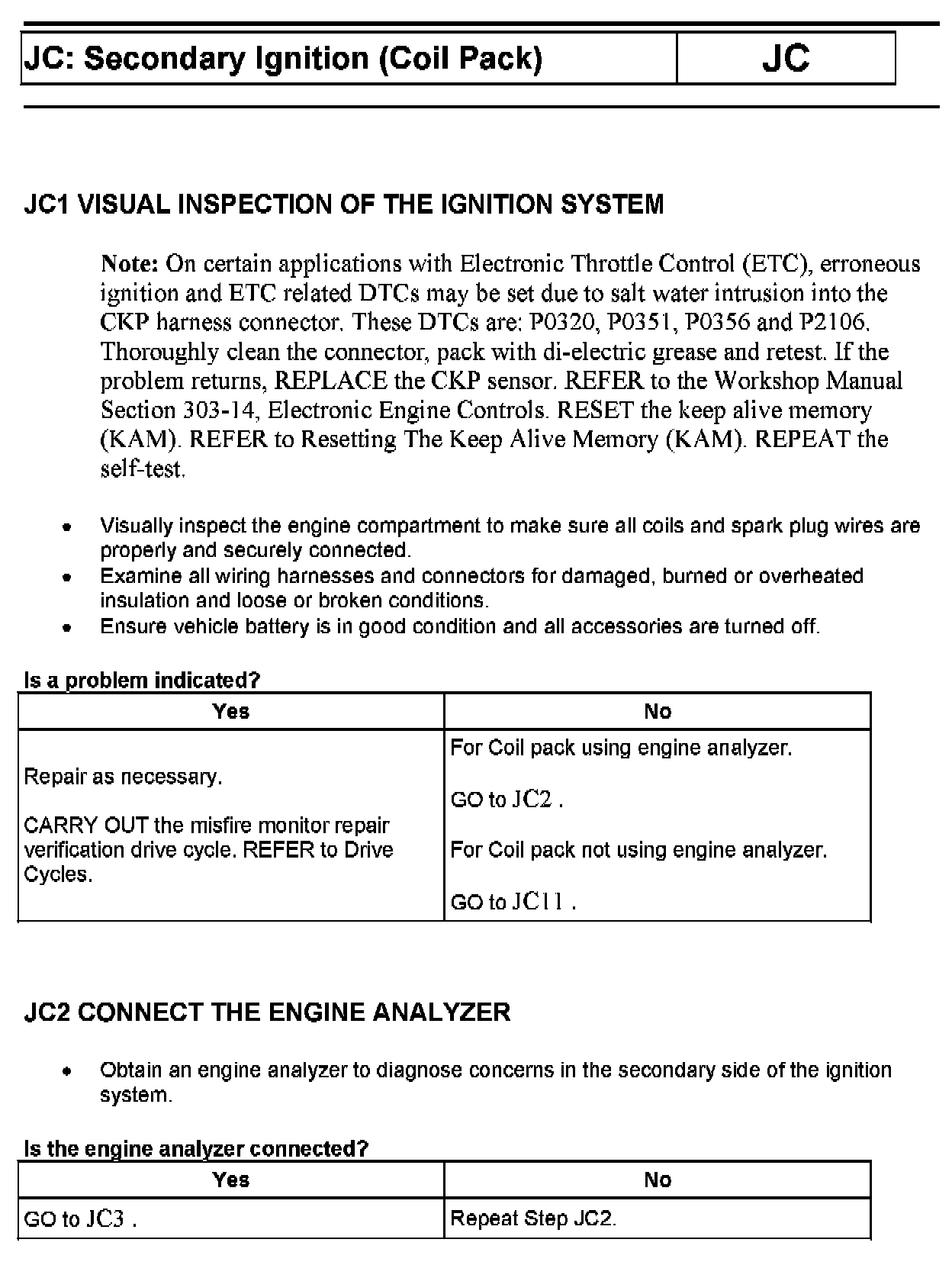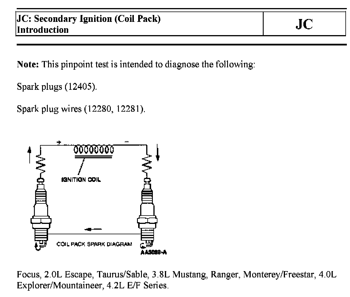 PINPOINT TEST JC: SECONDARY IGNITION (COIL PACK)