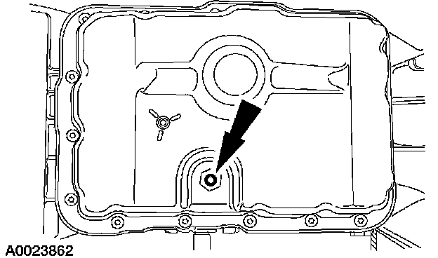 16. Allow the fluid to drain. Make sure that the fluid temperature is between 27°C - 49°C (80°F - 120°F). When the fluid comes out as a thin stream or drip, the fluid is at the correct level.