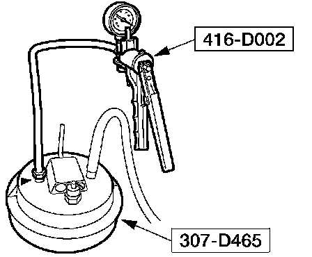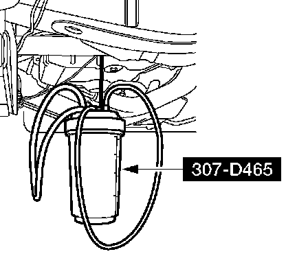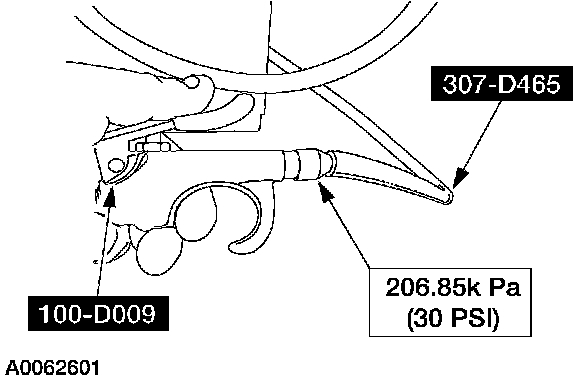 12. Apply a maximum of 206.85 kPa (30 psi) to the open end of the vacuum/pressure hose from the special tool. Fluid will immediately start flowing out of the special tool into the transmission fluid pan.