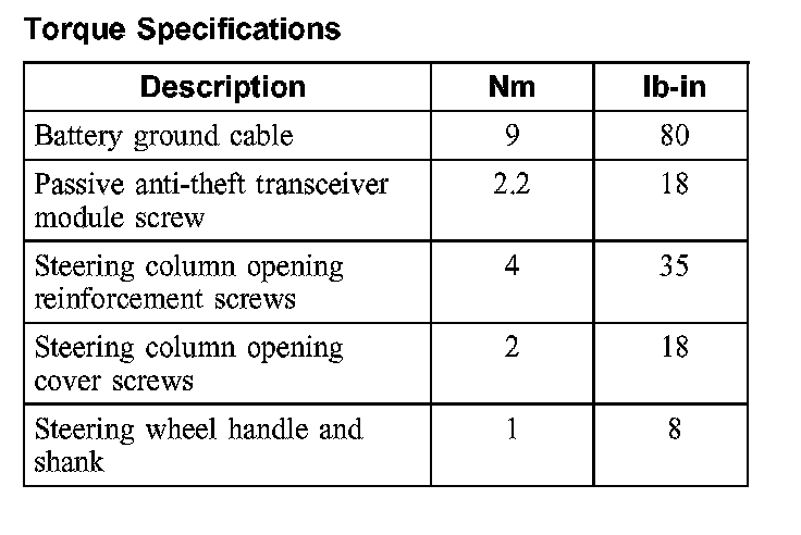 Torque Specifications: