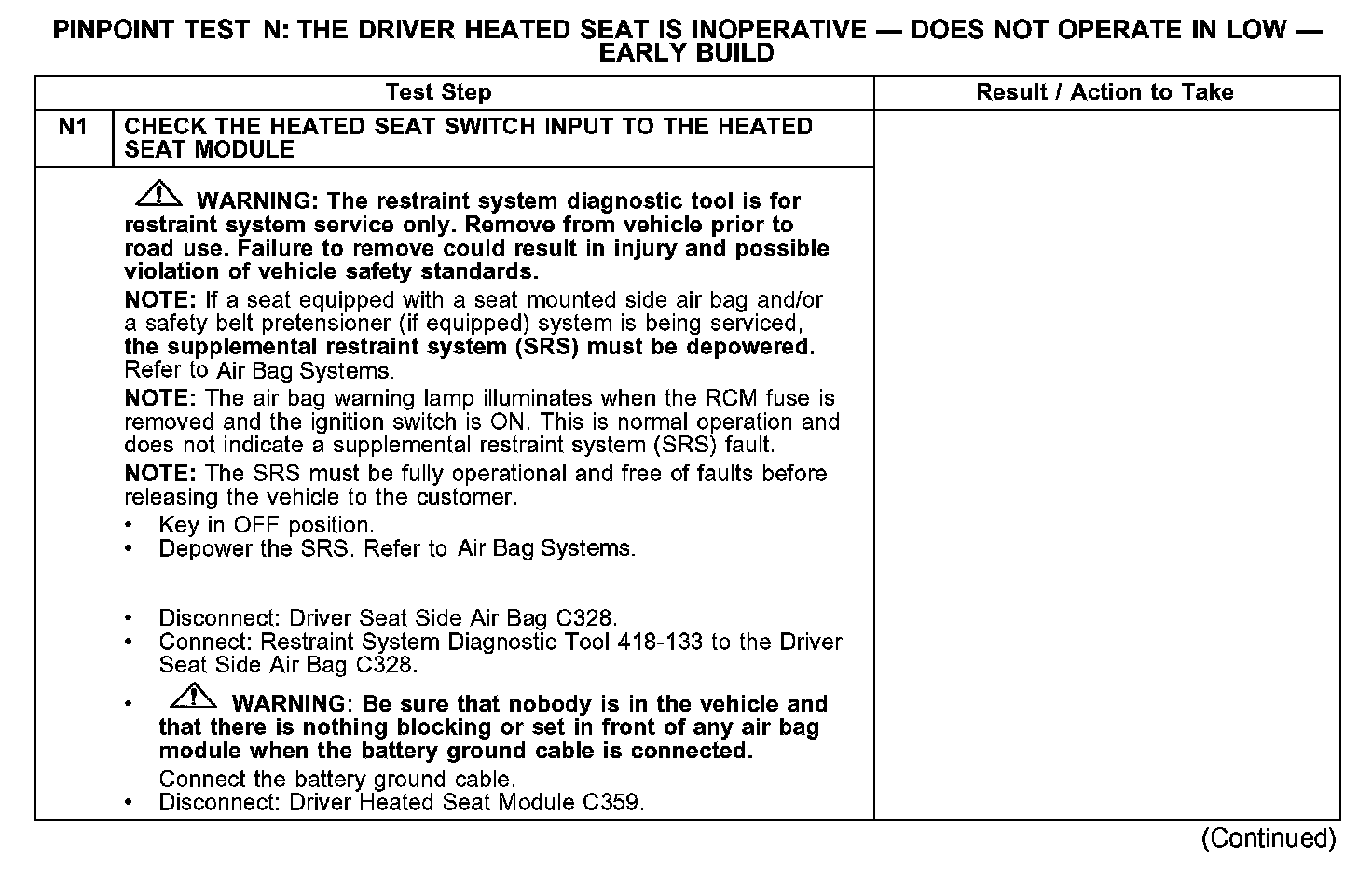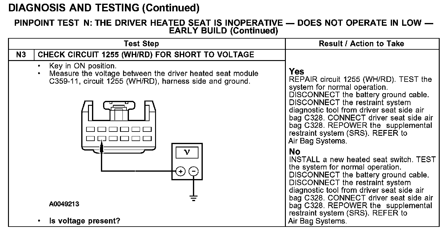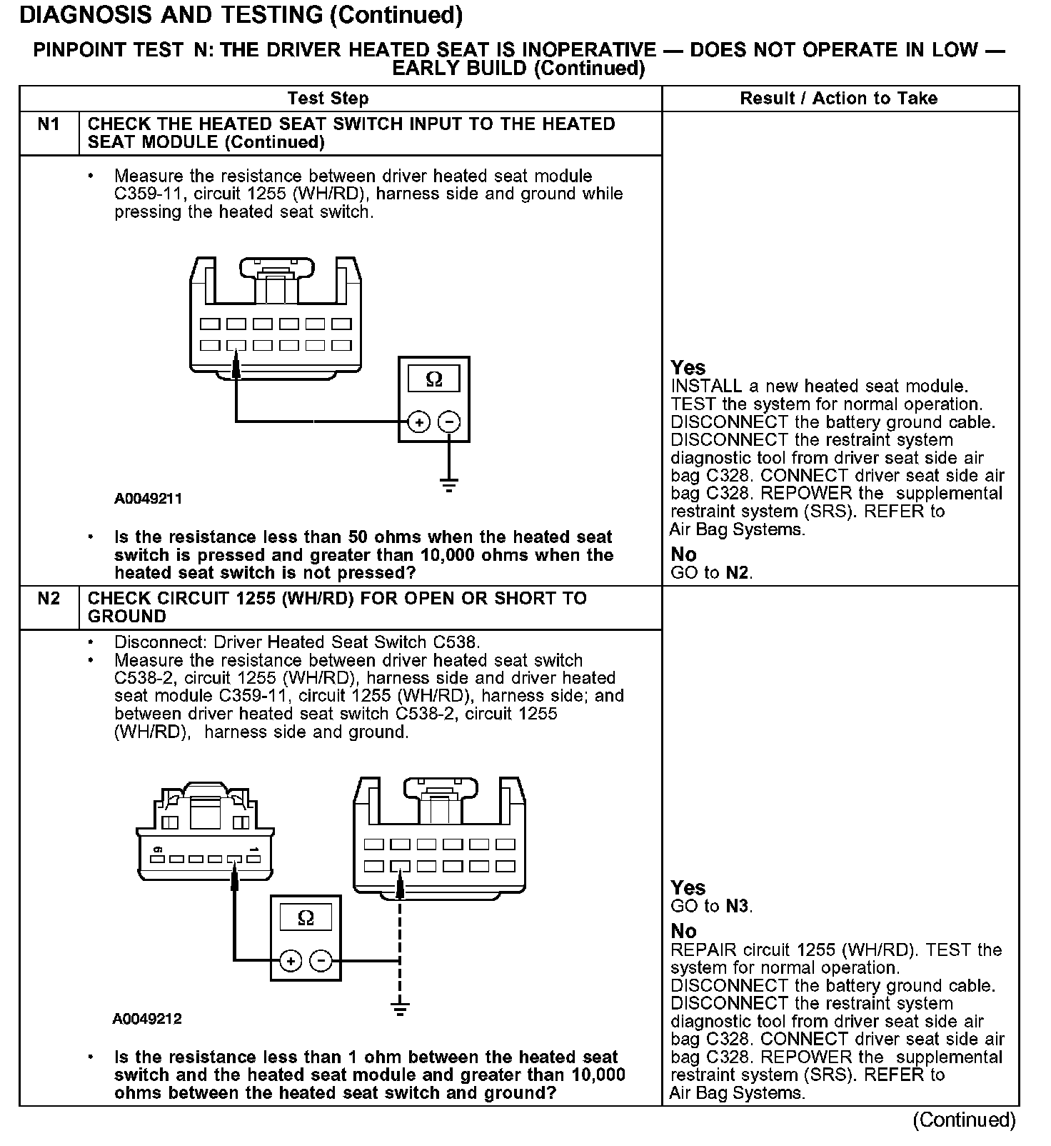 PINPOINT TEST N: THE DRIVER HEATED SEAT IS INOPERATIVE - DOES NOT OPERATE IN LOW - EARLY BUILD