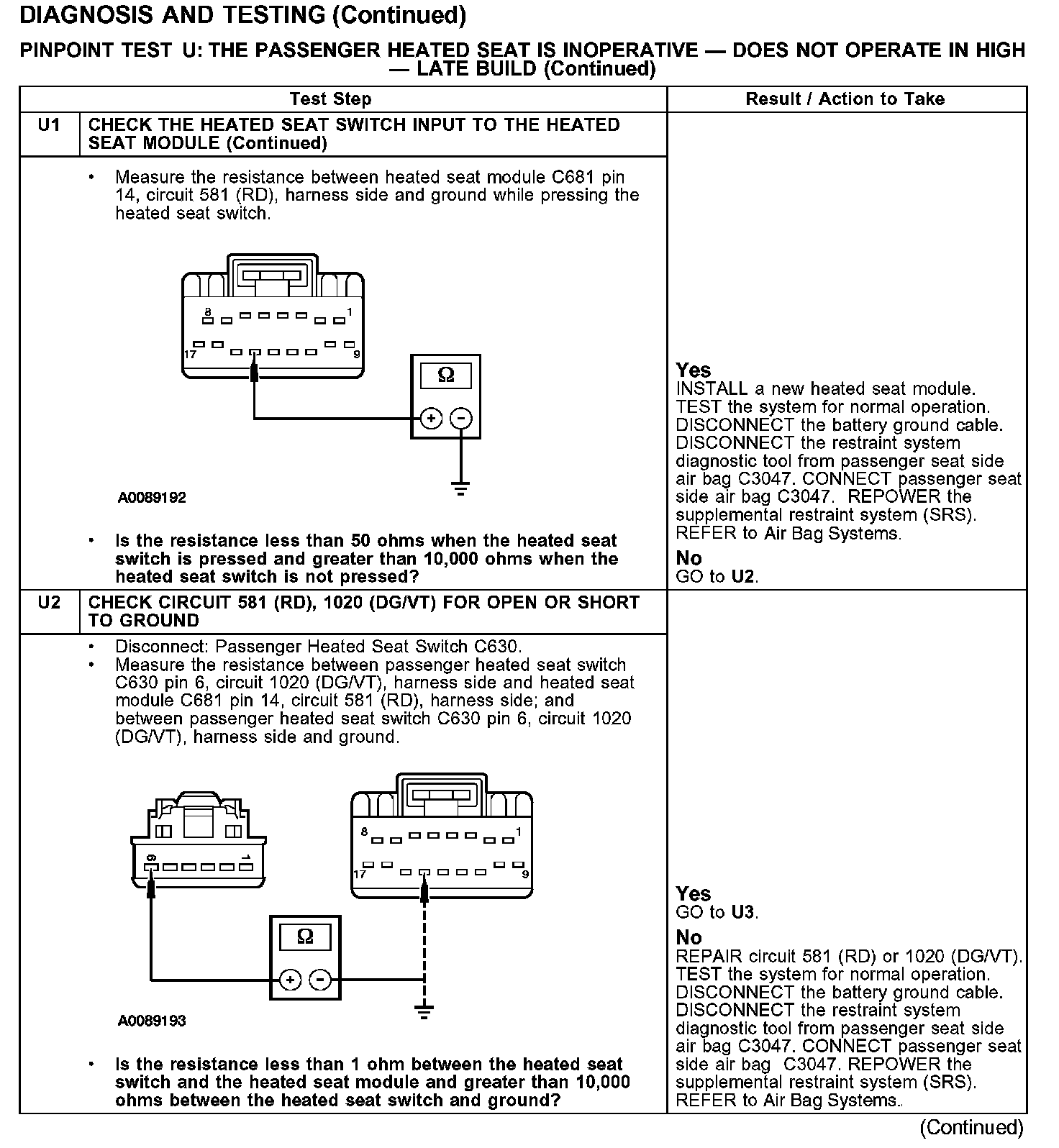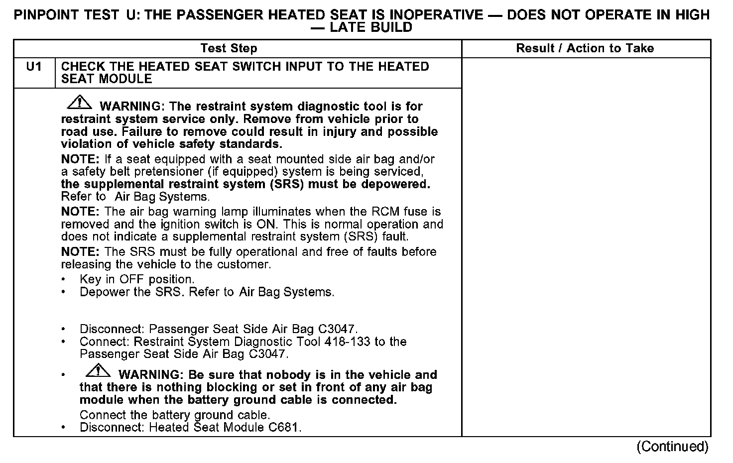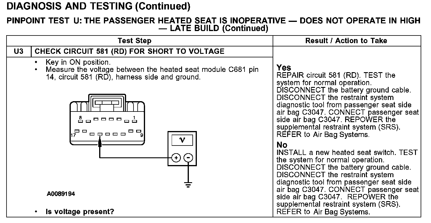 PINPOINT TEST U: THE PASSENGER HEATED SEAT IS INOPERATIVE - DOES NOT OPERATE IN HIGH - LATE BUILD