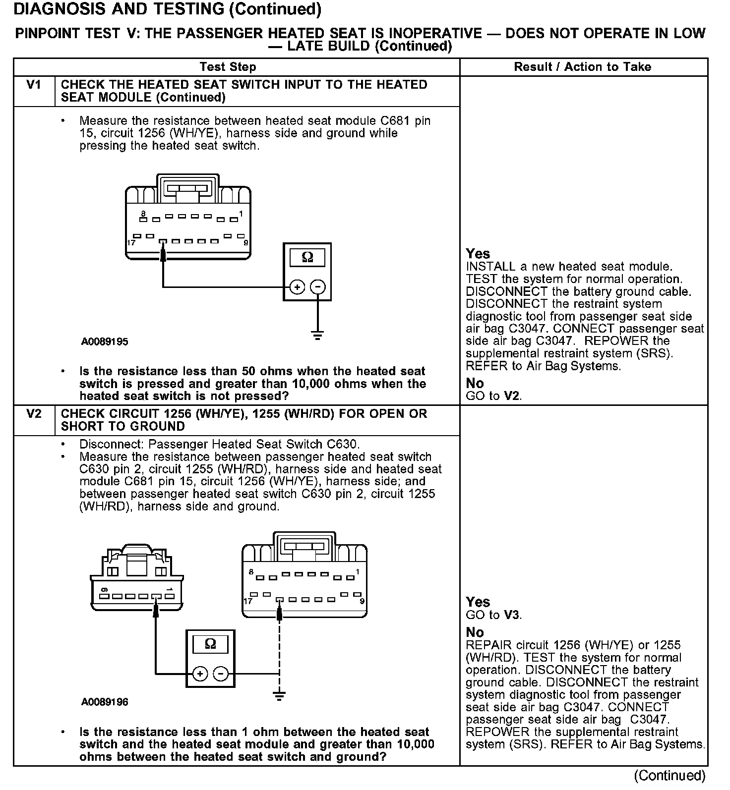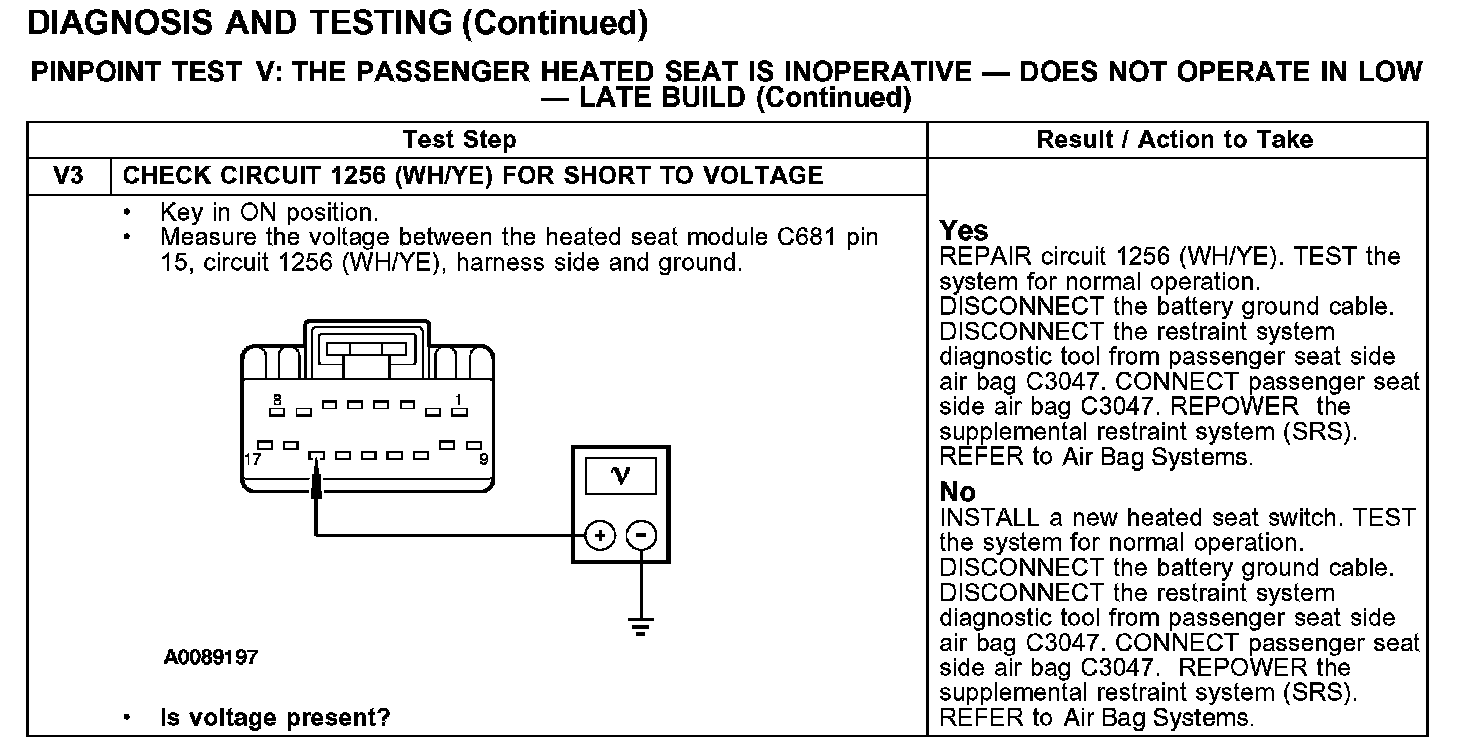 PINPOINT TEST V: THE PASSENGER HEATED SEAT IS INOPERATIVE - DOES NOT OPERATE IN LOW - LATE BUILD
