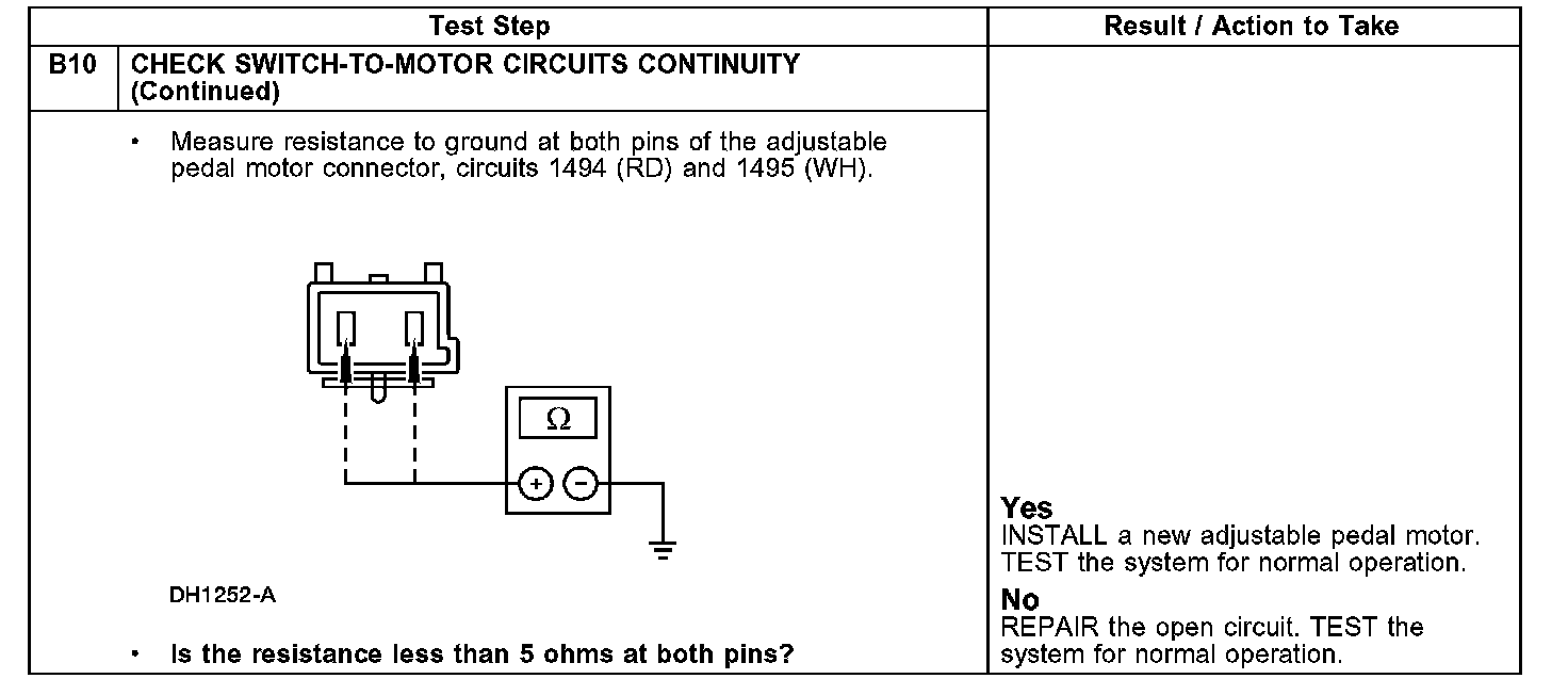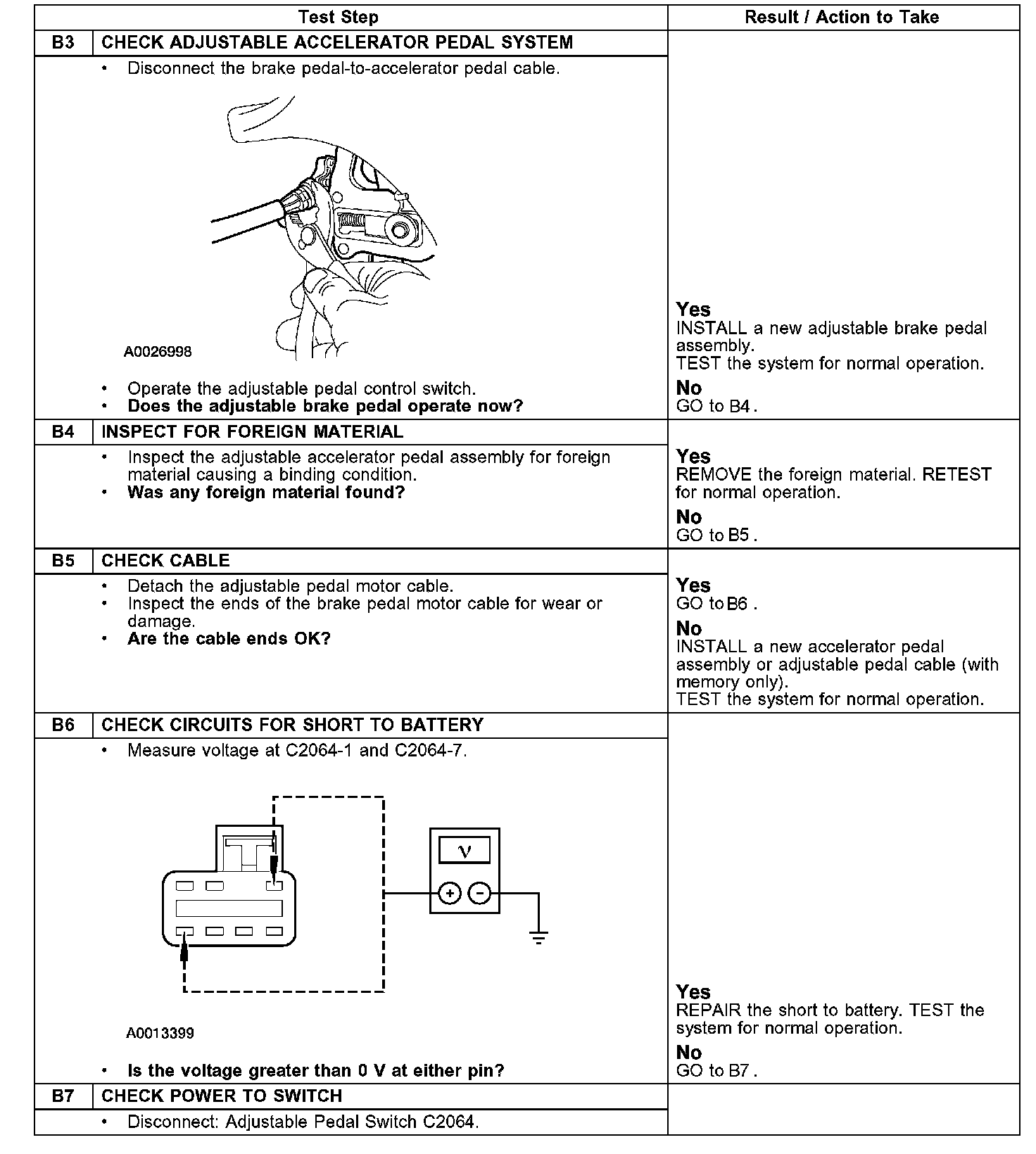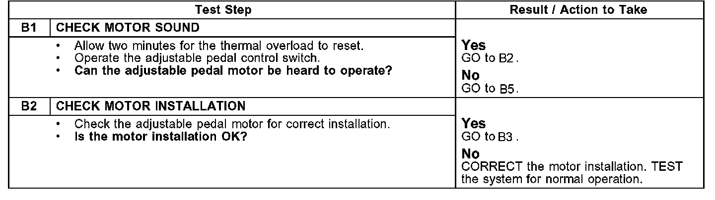 PINPOINT TEST B: ADJUSTABLE BRAKE PEDAL DOES NOT OPERATE CORRECTLY - SYSTEM WITHOUT MEMORY