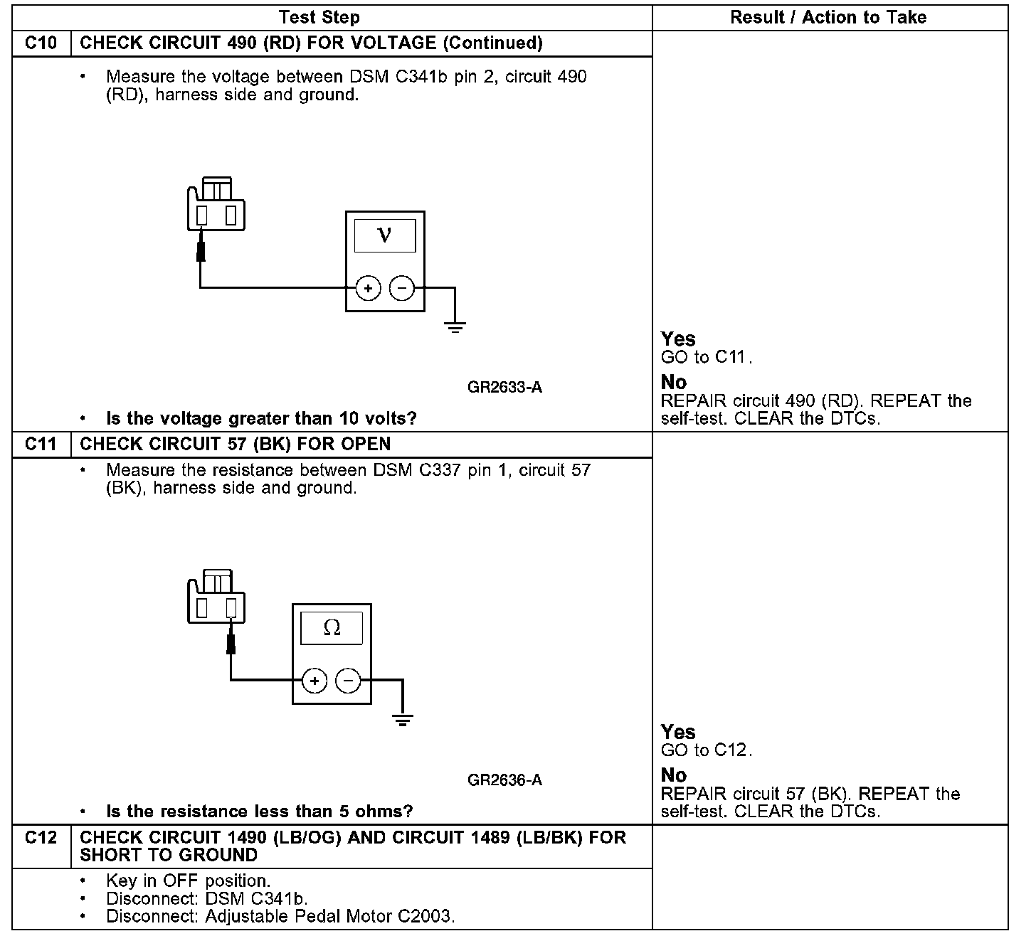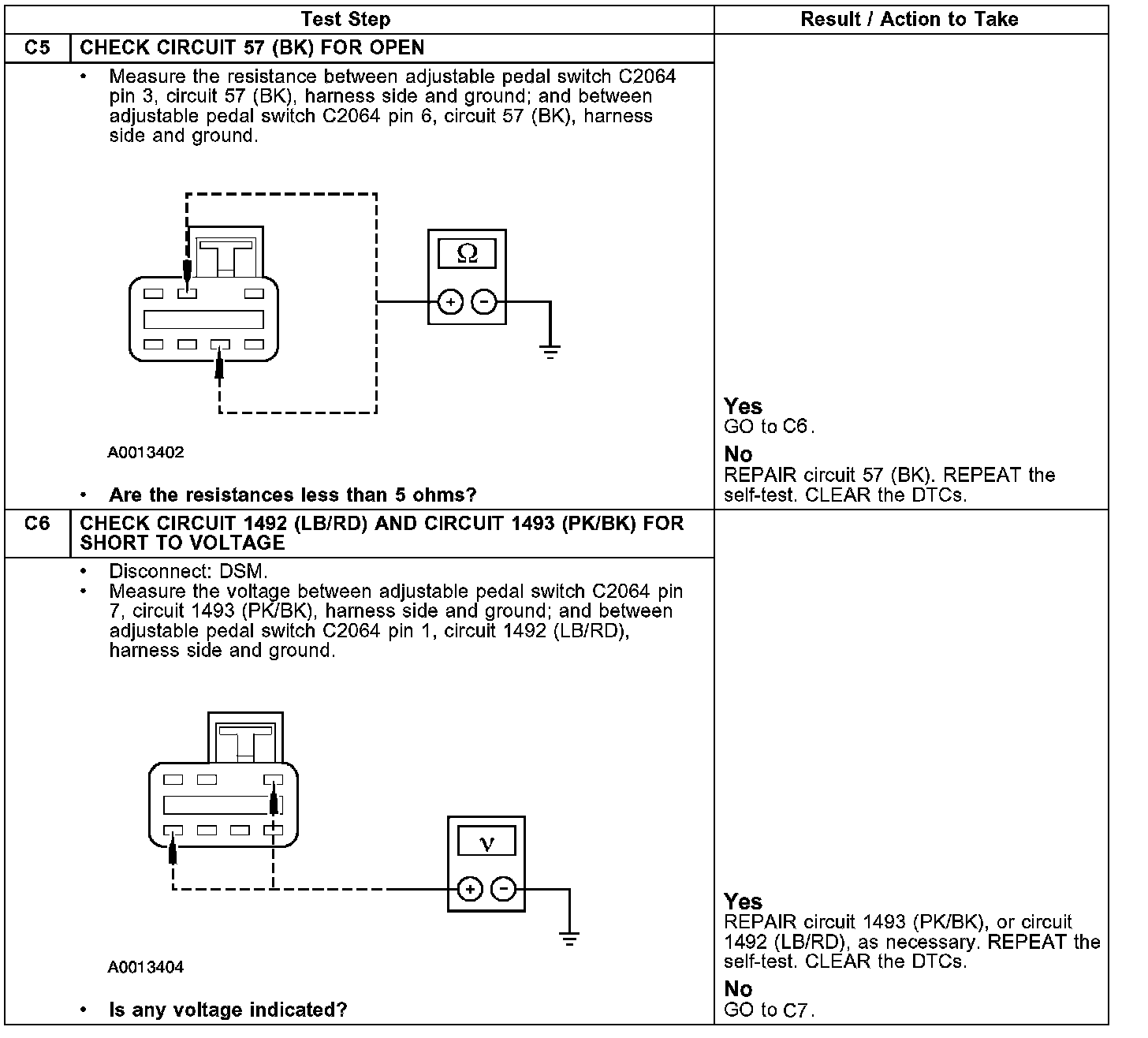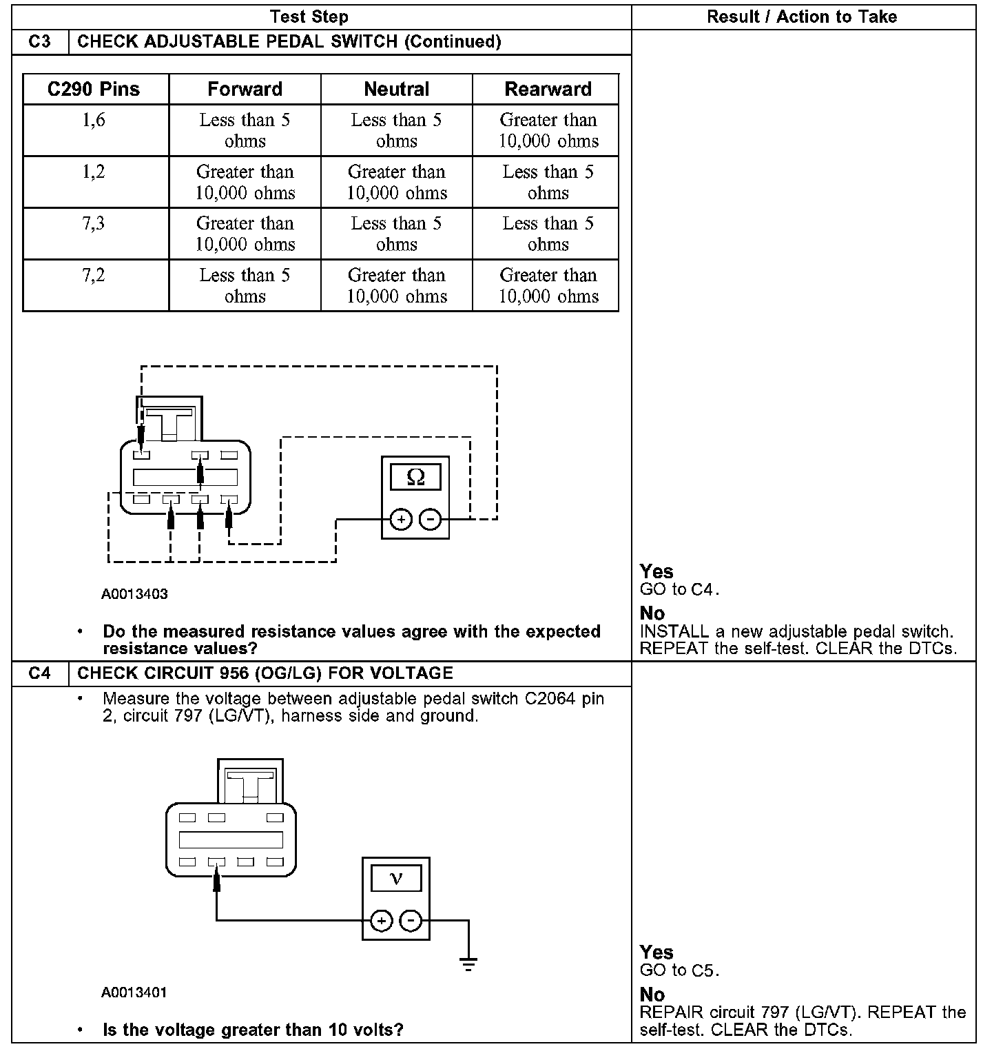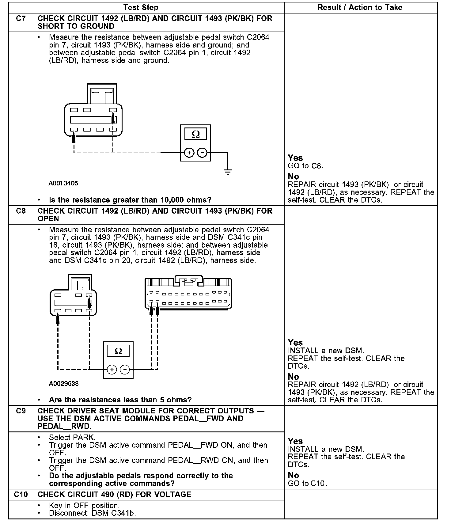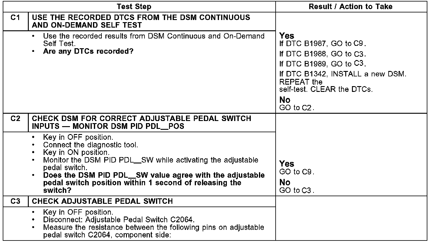 PINPOINT TEST C: ADJUSTABLE BRAKE PEDAL DOES NOT OPERATE CORRECTLY - SYSTEM WITH MEMORY