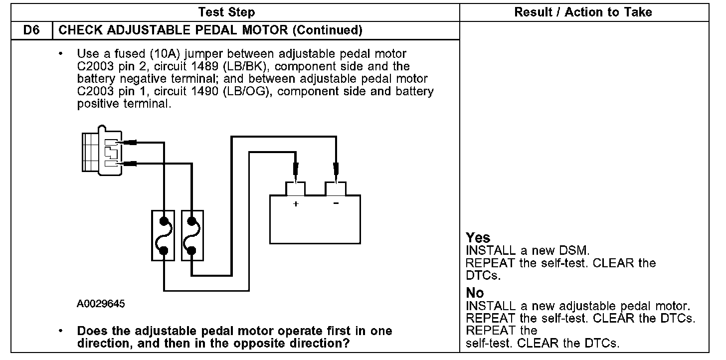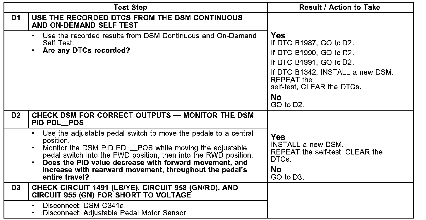 PINPOINT TEST D: ADJUSTABLE BRAKE PEDAL DOES NOT OPERATE CORRECTLY - DOES NOT OPERATE USING THE MEMORY SET SWITCH