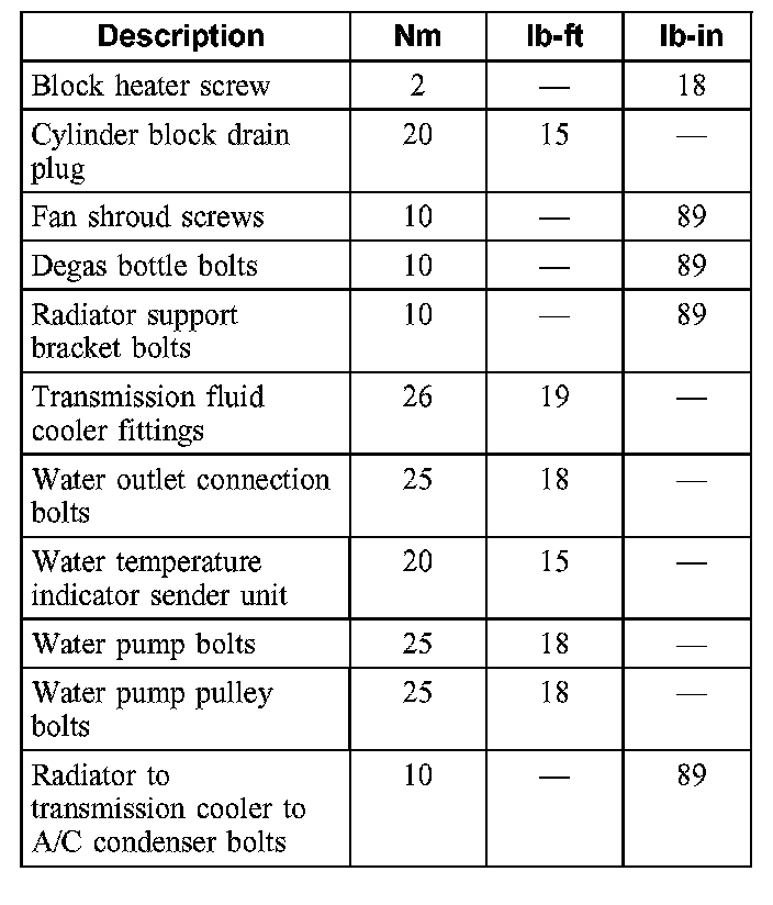 Torque Specifications